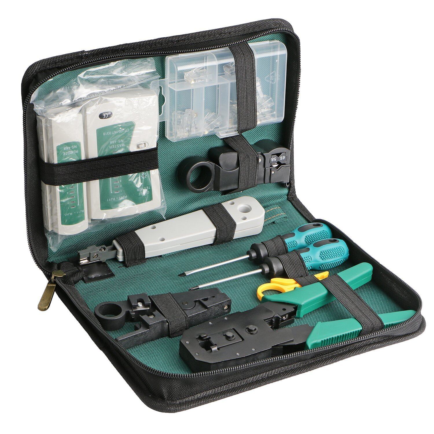【在庫セール】LANケーブル自作工具キット LAN圧着ペンチ ストリッパー付き テスター コネクター10個 ブラグ ネットワーク修理ツールボックス付き 11点セット HUACAM HCM21 | ニコニコSHOP