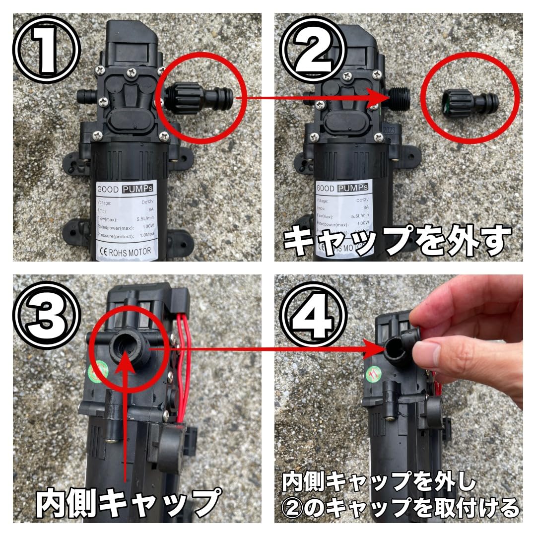 【注意事項】※最後の写真のように内側キャップを取らないと水を吸い上げません。必ず内側キャップを取ってからご使用下さい。※ガンとホースの繋ぎがカチッと音が鳴るまではめて下さい。そうしないと水漏れの原因となります。※本製品は出荷前に水の吸い上げテストを行なっているので、開封後、水が少し残ってる可能性がございますことをご了承下さい。