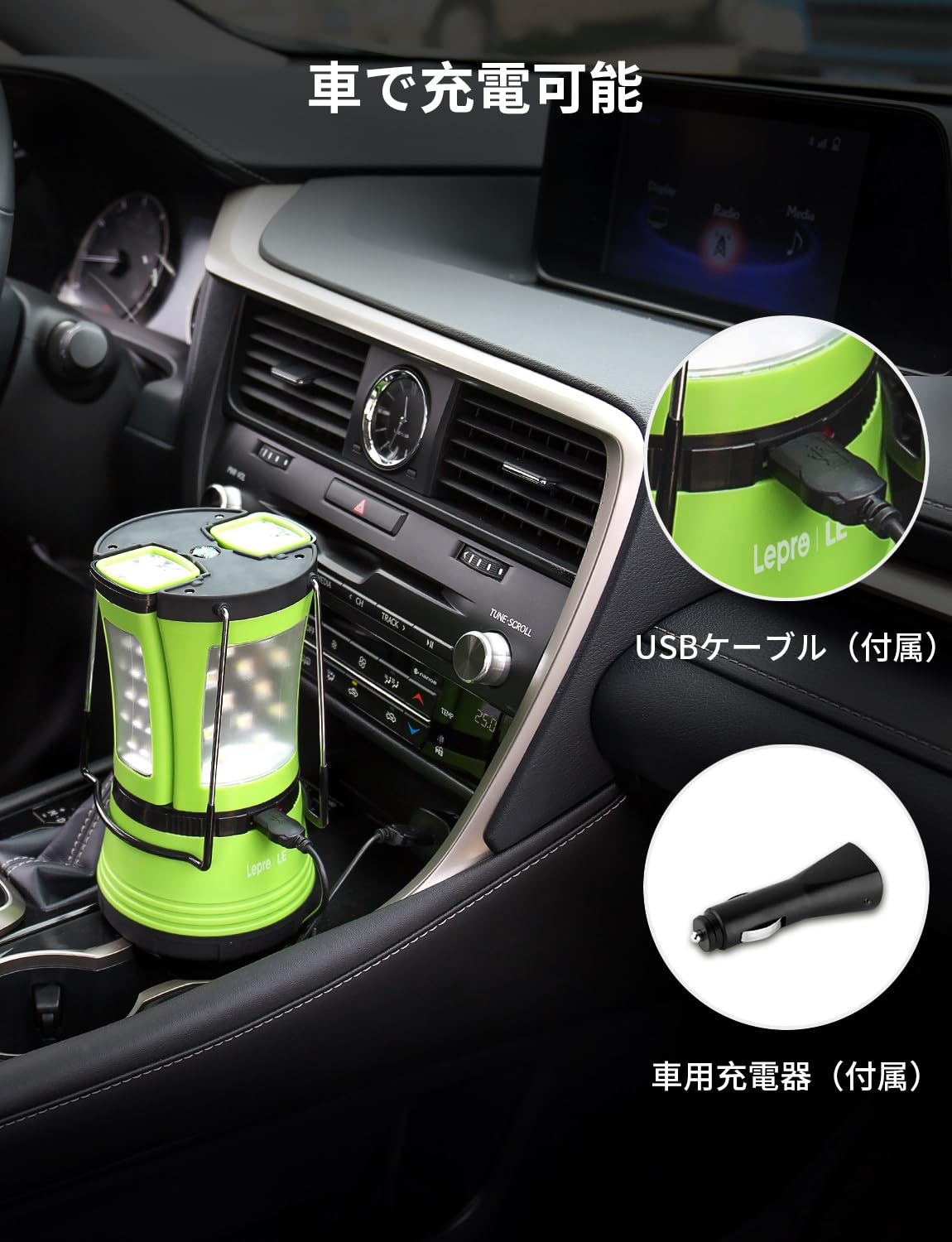 Lepro ランタン ledランタン キャンプランタン 懐中電灯 2本分離できる 【充電式と乾電池併用/最大33~66時間点灯/昼光色/高輝度タイプ/防水防滴】 USBケーブルと車用充電器付き 車中泊用 バーベキュー キャンプ 夜釣り 台風 災害 常備灯 停電 緊急 非常用 防災 ライト [3300012-DW]