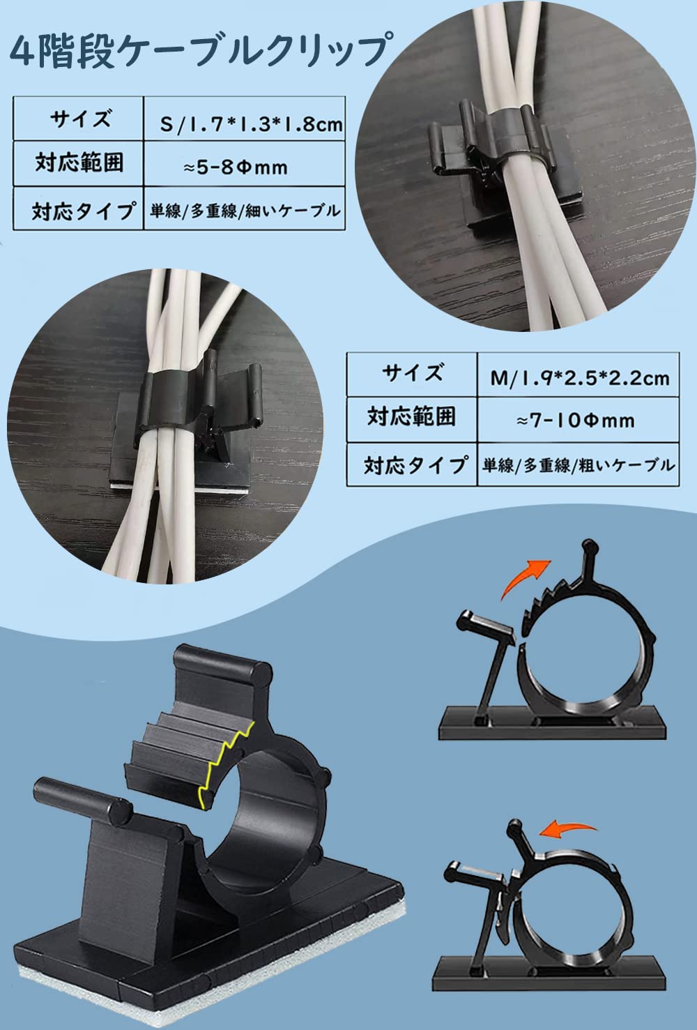 【調節可能なデザイン】ケーブルの太さにご自由に調節できます。手軽に結束、固定できます。便利性がいいです。