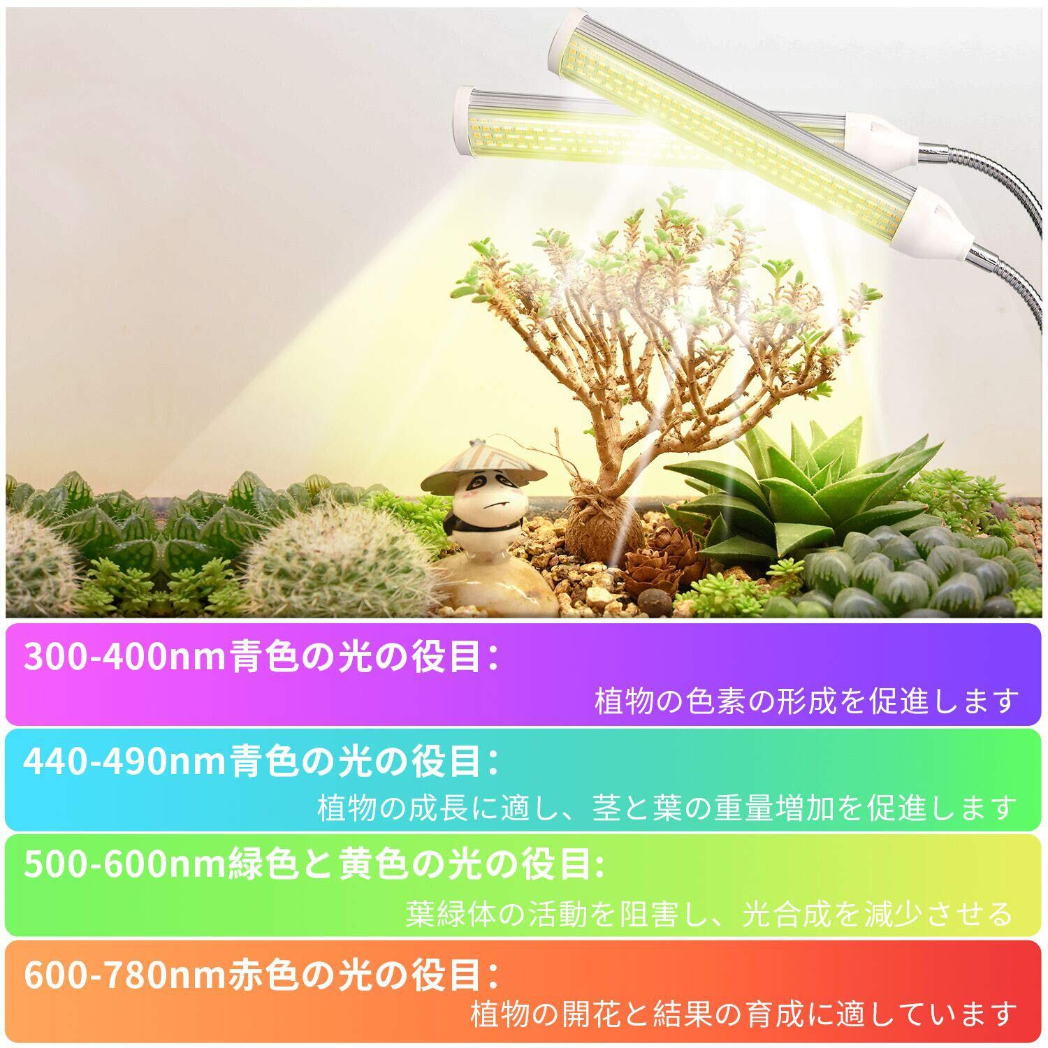 太陽の光のような全光スペクトル・日照不足解決:110W光源-288個LEDの組み合わせて、この植物育成ライトは380nmから800nmまでの光束提供するため、 植物の育成状況や種類に合わせてぴったりな波長の光を照射することができるのでおすすめです。
