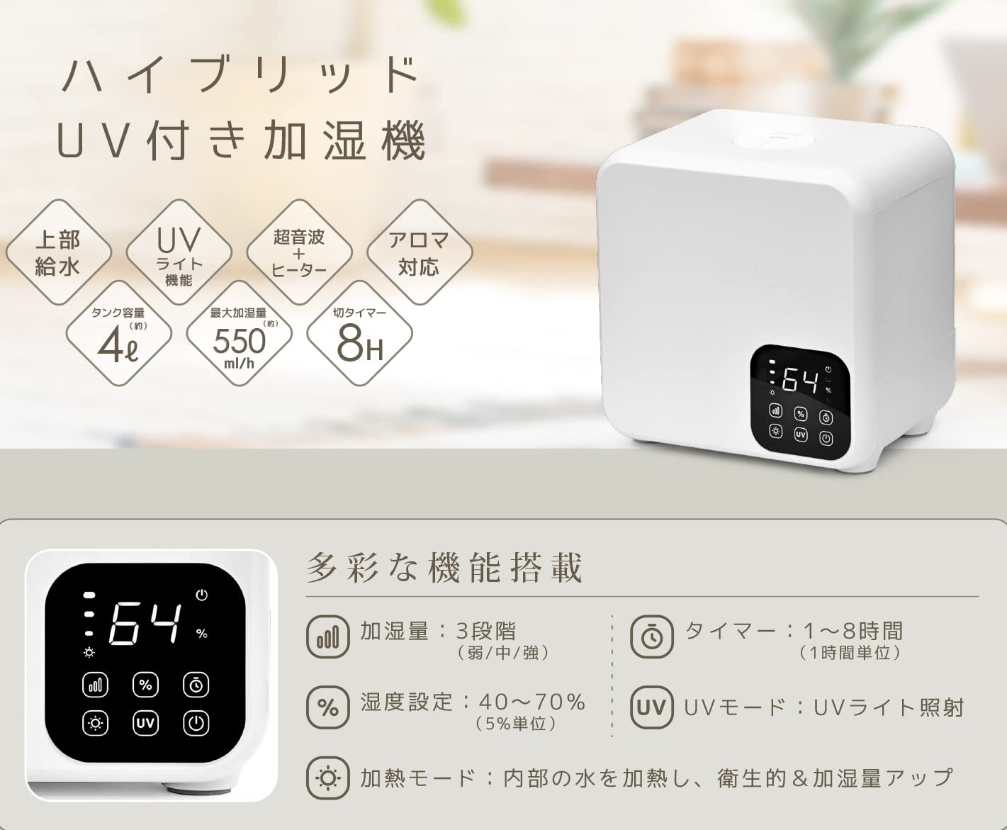 ●UVライト機能が付いたハイブリッド式の加湿器。衛生状態が気になる今、安心してご使用いただける商品です。