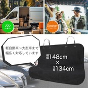 【■小さく畳んで保管】後部座席を足元まですっぽり覆う大きさなのに、コンパクトに畳めて邪魔になりません。軽から大型車まで使える横148cm×縦134cmサイズ。丸く畳んで車内のクッション替わりにも。
