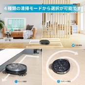 4種類の清掃モードと段差乗り越え機能:「自動掃除」「スポット掃除」「弓形掃除」「エッジ掃除」の4種類からお好きな清掃モードを選択頂けます。吸引モードについても、「静音モード 800Pa」「標準モード1500Pa」「強力モード1900Pa」からお部屋の汚れ具合などに応じて選択頂けます。「MAXモード」はボタンには表示されていませんが、スポットモードで掃除中にMAX吸引力が自動的に作動し、最大2800Paとなります。また、20mm以内の高低差に対応しておりますので、段差により稼働がストップせず清掃作業が続けられます。なお、不在時や就寝時にもご使用頂けるよう、静音モードでの稼働音は55dBに抑えました