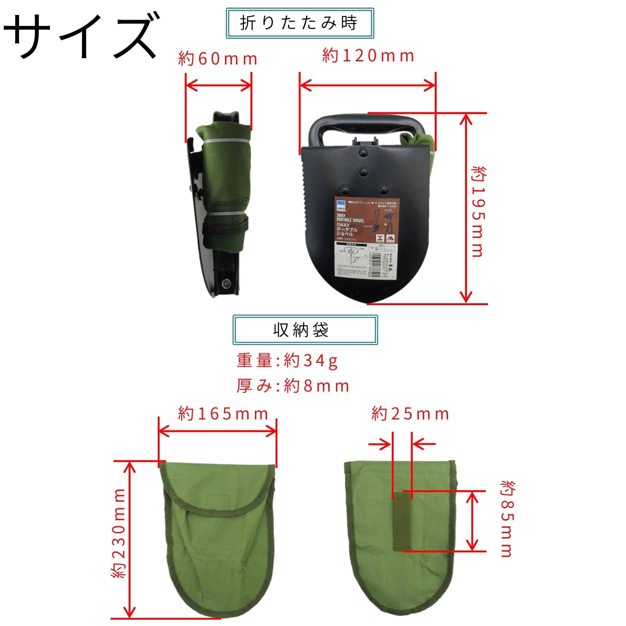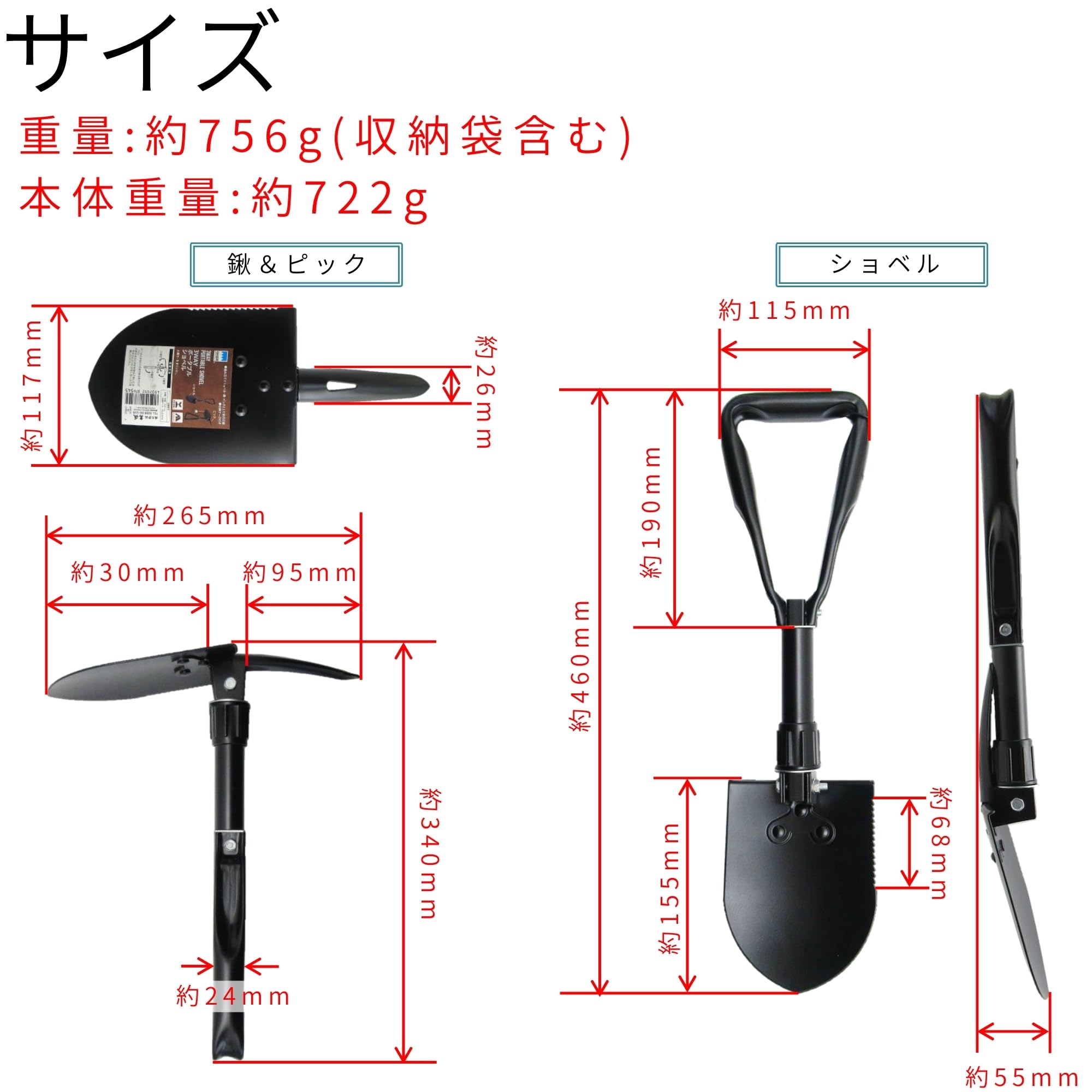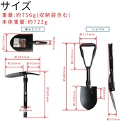 【本体サイズ】折りたたみ時:約幅120×高さ195×奥行60mm、組み立て時(ショベル):約幅115×高さ460×奥行55mm、重量:約722g