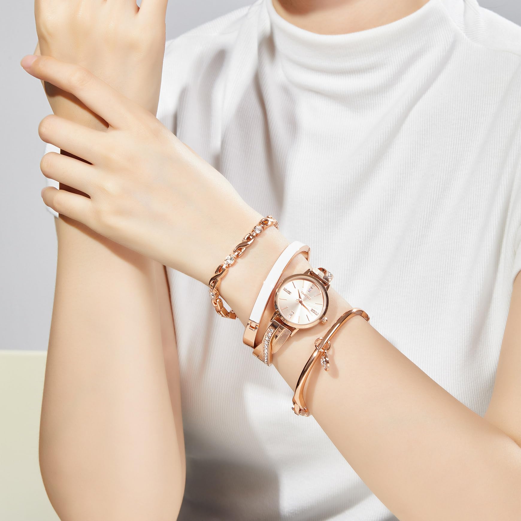 日本製クォーツの腕時計、高級なブレスレットを3つ組み合わせて、シャツやスカートを合わせるのにもぴったり
