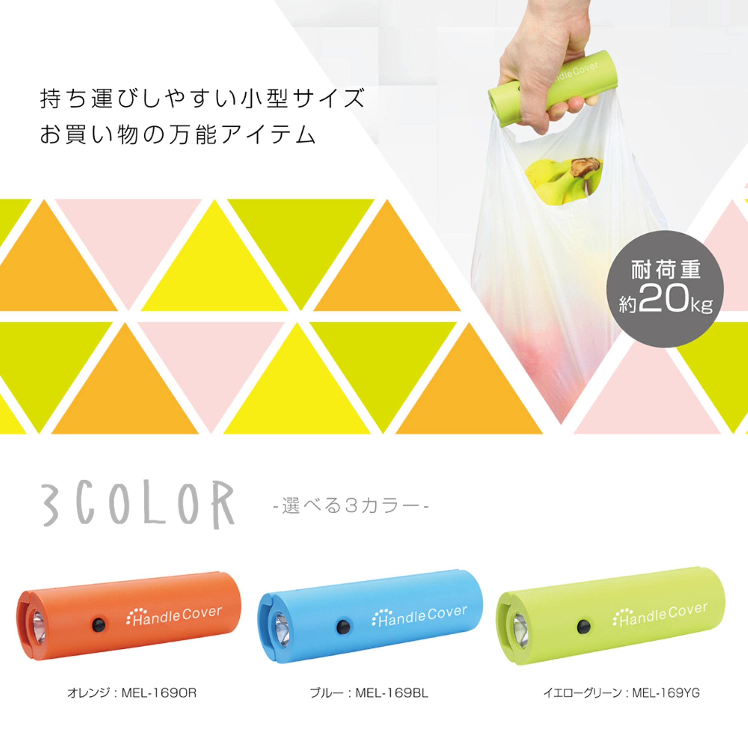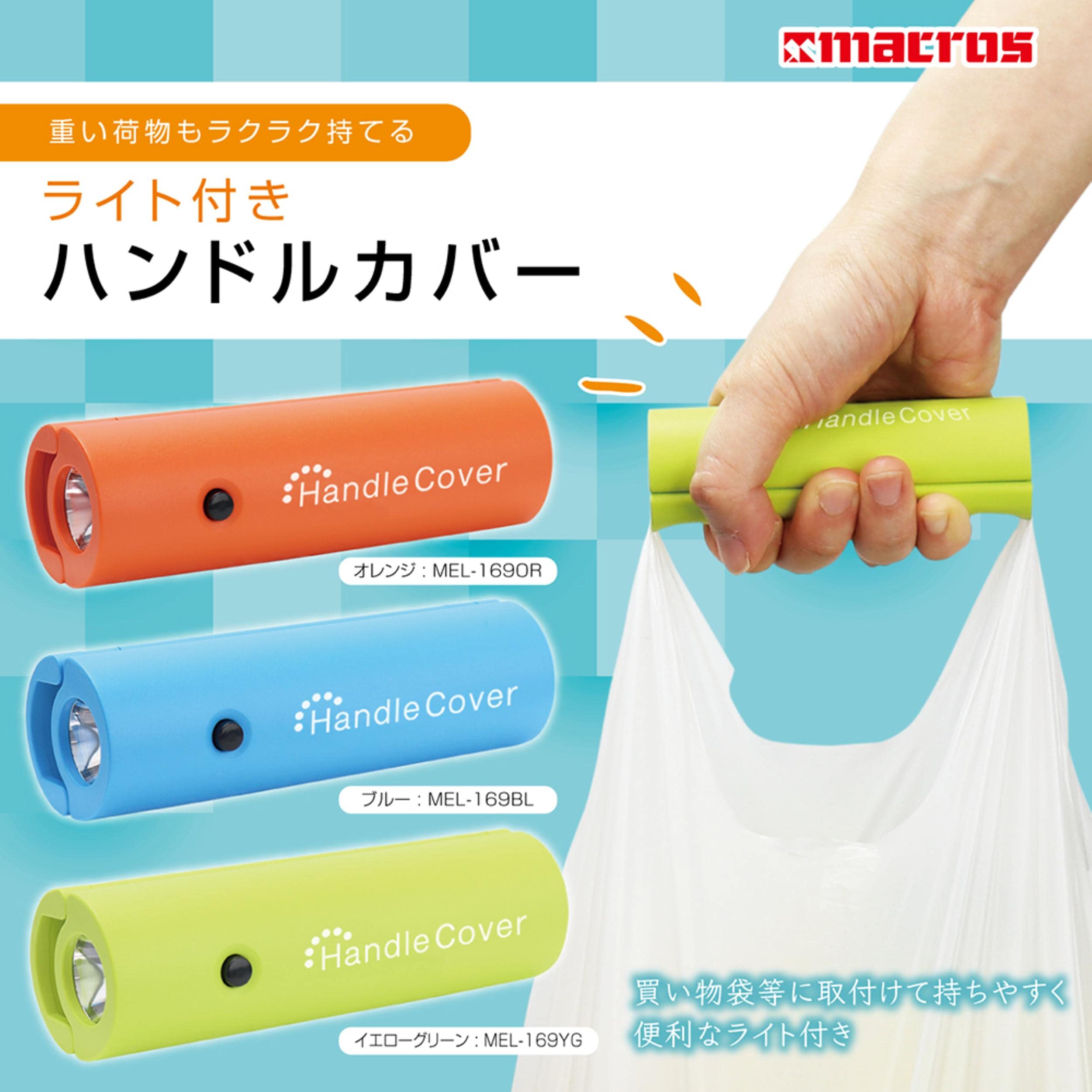 マクロス バッグ ハンドルカバー レジ袋 エコバッグ らくらくグリップ & 安全 防犯 ライト付き 耐荷重20kg オレンジ MEL-169OR