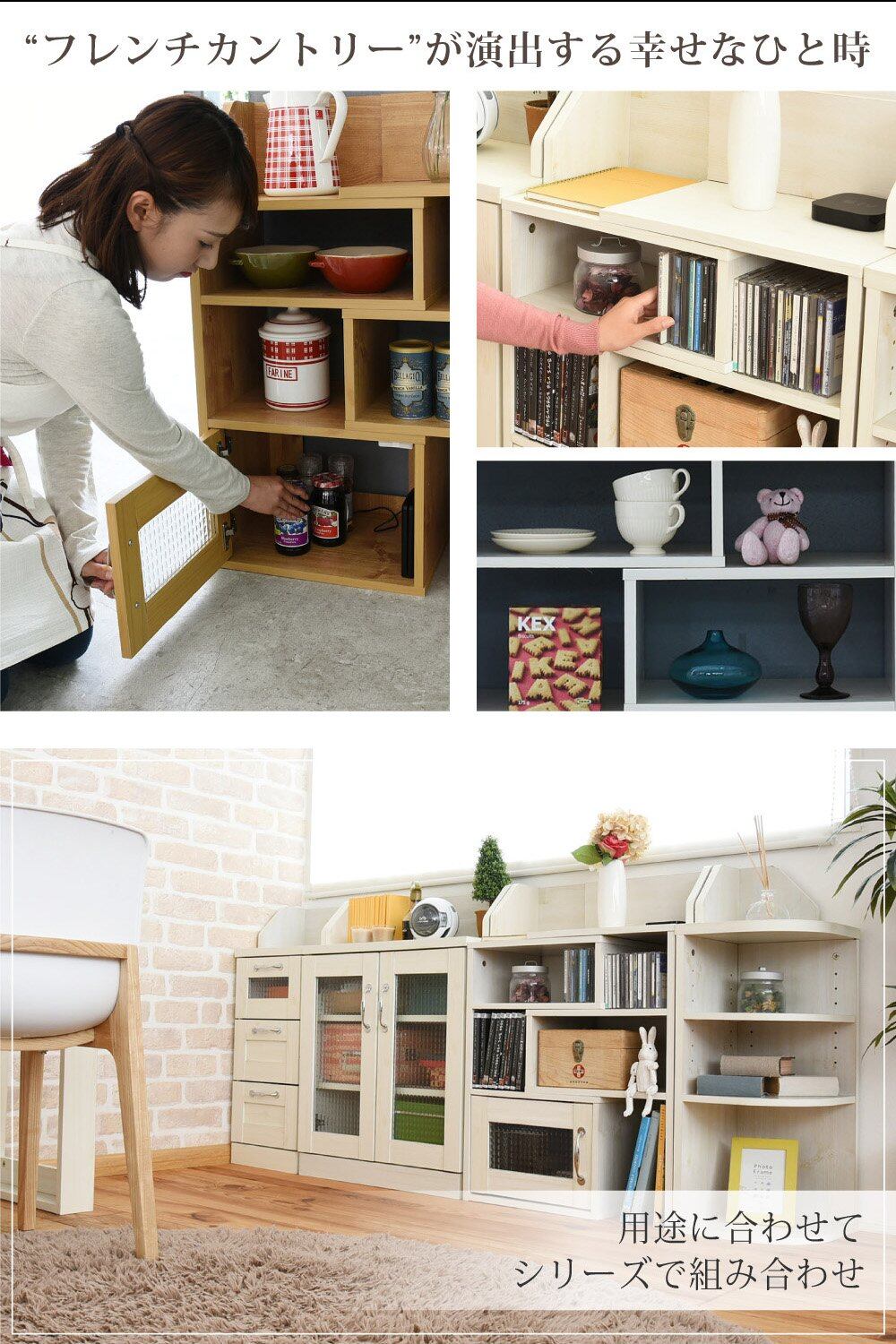 カントリーデザインの木製伸縮ラック スリムな幅40cmからワイドの幅65cmまで調整可能なのでお部屋に合わせてお使いいただけます 高さ80cmなのでキッチンカウンター下収納にぴったり お色味は木目調デザインの清潔感あるホワイトと温もりを感じるナチュラルの2色をご用意しています