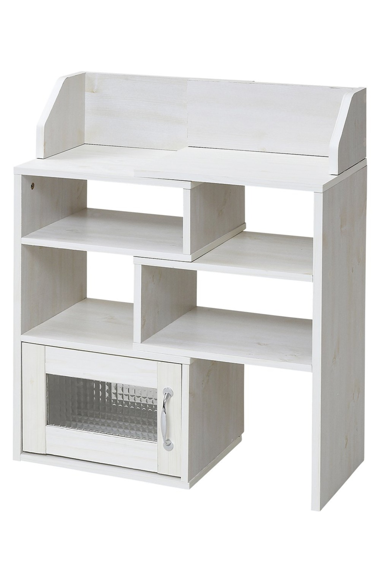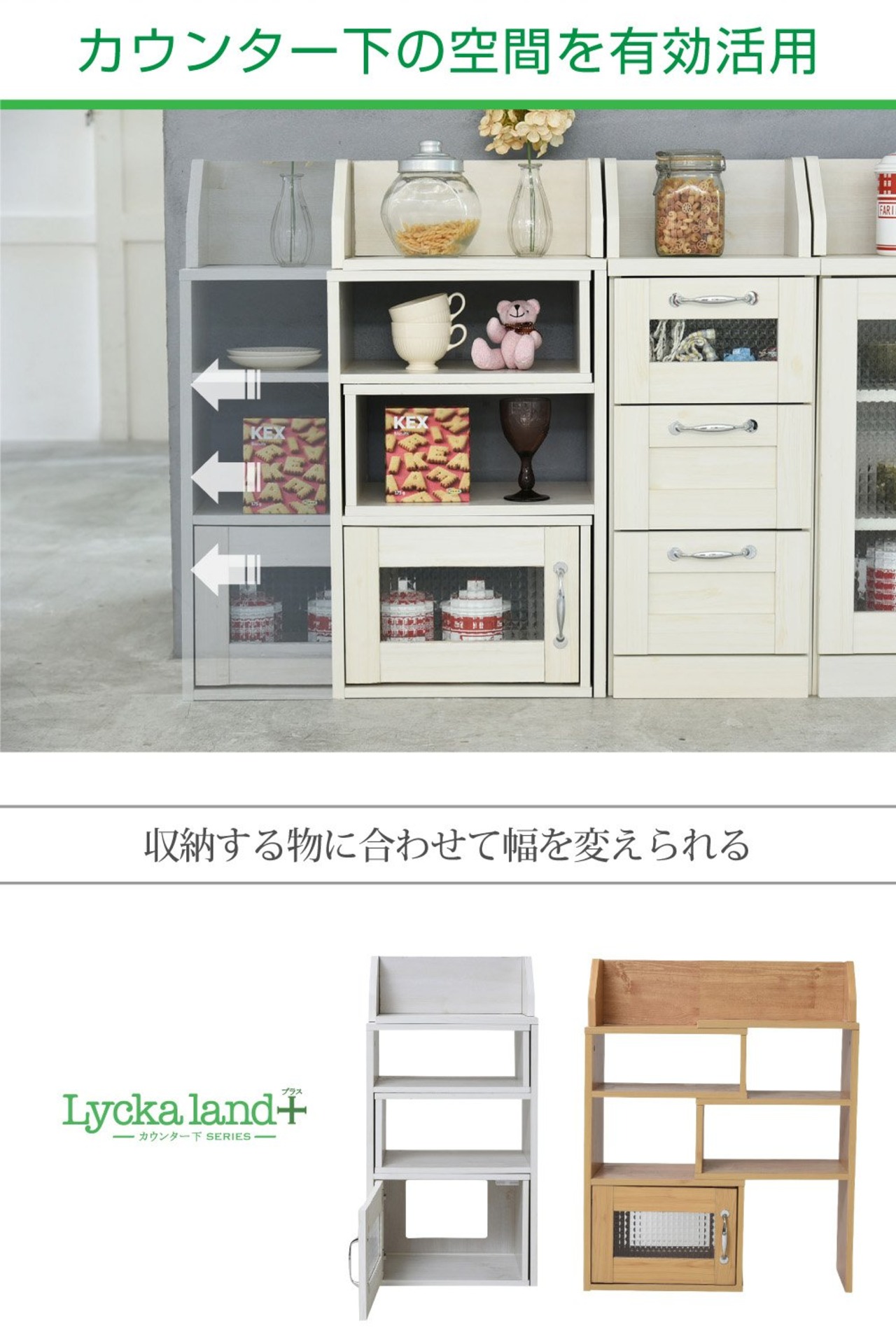 JKプラン Lycka land カウンター下収納 スライドラック カントリー風 モデム ルーター収納 伸縮タイプ 幅40 から 幅65 調整可能 高さ80 スリムラック FLL-0063-WH