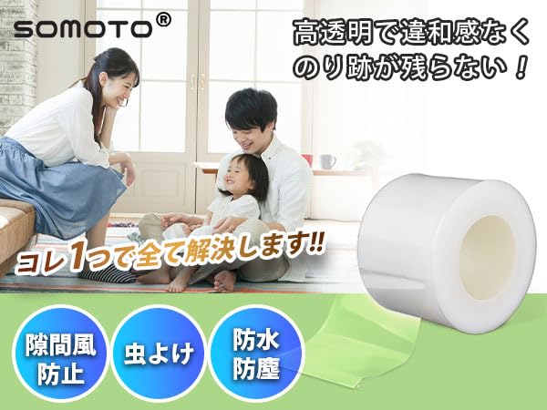 SOMOTO 隙間テープ 窓 隙間風対策 隙間風防止テープ クリアで違和感なく ノリが残らず 防水 防寒 防風 防音 防虫 冷暖房効率アップ 冷気遮断 網戸/ドア/玄関/サッシ/台所テープ(クリア、幅5cm×25m)