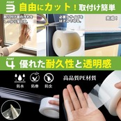 『透明で目立たない&自在なカット』隙間テープ 窓は、高度な透明素材を使用しており、目立たず美観を損ねる心配がありません。完全に透明であり、お住まいのインテリアと調和し、違和感がありません。また、サイズが自由にカットでき、貼り付けが容易で、美しい仕上がりを実現します。特別な工具は必要ありません。適切な長さにカットしてから、貼りたい場所にしっかりと押し付けるだけでOKです。カーブや凹凸のある場所でも完璧に貼り付けられ、取り外しも簡単で違和感もありません。幅5cm×25mの窓 隙間風対策テープはコスト効果が高く、窓の隙間テープ、シールテープ、キッチンのコーキングテープなどさまざまな用途に活用できます。