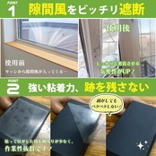 『幅広い適用&簡単な使用方法』隙間テープ 窓は、雨戸や紗戸、物置の棚、門などさまざまな場所で広く使用されています。タイル、ガラス、プラスチック、金属などの滑らかな表面に貼り付けられ、隙間のカビや汚れをブロックし、水や汚れ、カビ、埃を防ぐことができます。清掃後、テープを希望の箇所に貼り付け、必要なサイズにカットします。表面を傷つけず、残留物を残さないため、使い勝手も抜群です。この隙間テープは無框の引き戸やガラス戸、アルミ窓、戸棚、ワードローブなどさまざまな場所で利用され、寝室からキッチン、浴室、洗面所、ホテルなど幅広い環境に適しています。