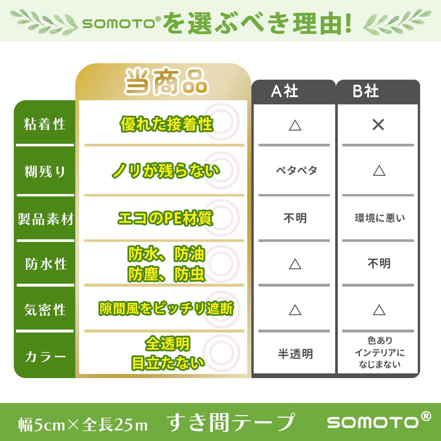 『メーカー情報』SOMOTOは正式に商標権を取得しております(商標登録番号6564376)。独立した生産工場を持ち、すべての製品は出荷前に全品検査され、品質がされています。ご使用中に何か問題がある場合はいつでもお問い合わせください。[総長] 25m [幅]5cm [素材]非毒性な高品質PE素材