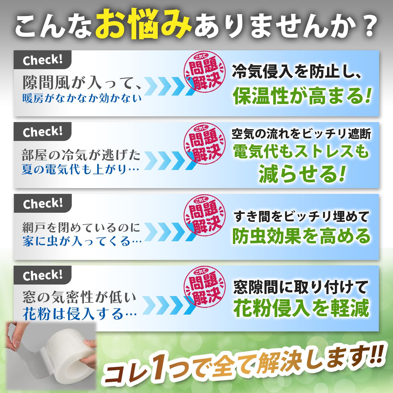 『窓隙間風対策&冷暖房の効率化』SOMOTO 隙間テープ 窓は、窓や玄関のサッシ、ガラス戸、ドアの下部など、隙間風が気になる場所に貼ることができます。貼るだけで花粉、ホコリ、小虫、蚊などの侵入をブロックし、外からの空気の流入を防ぎます。これにより、屋根や床、壁、窓からの冷気や暖気を逃さず、室内の温度を保つことができます。隙間テープ 窓は冷たい風や暑い風を家に入れず、窓の隙間を封じて部屋の冷暖房効率をアップし、電気代の節約にもつながります。同時に、窓の隙間からの騒音や屋外の煙やほこりの侵入も防ぎます。