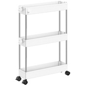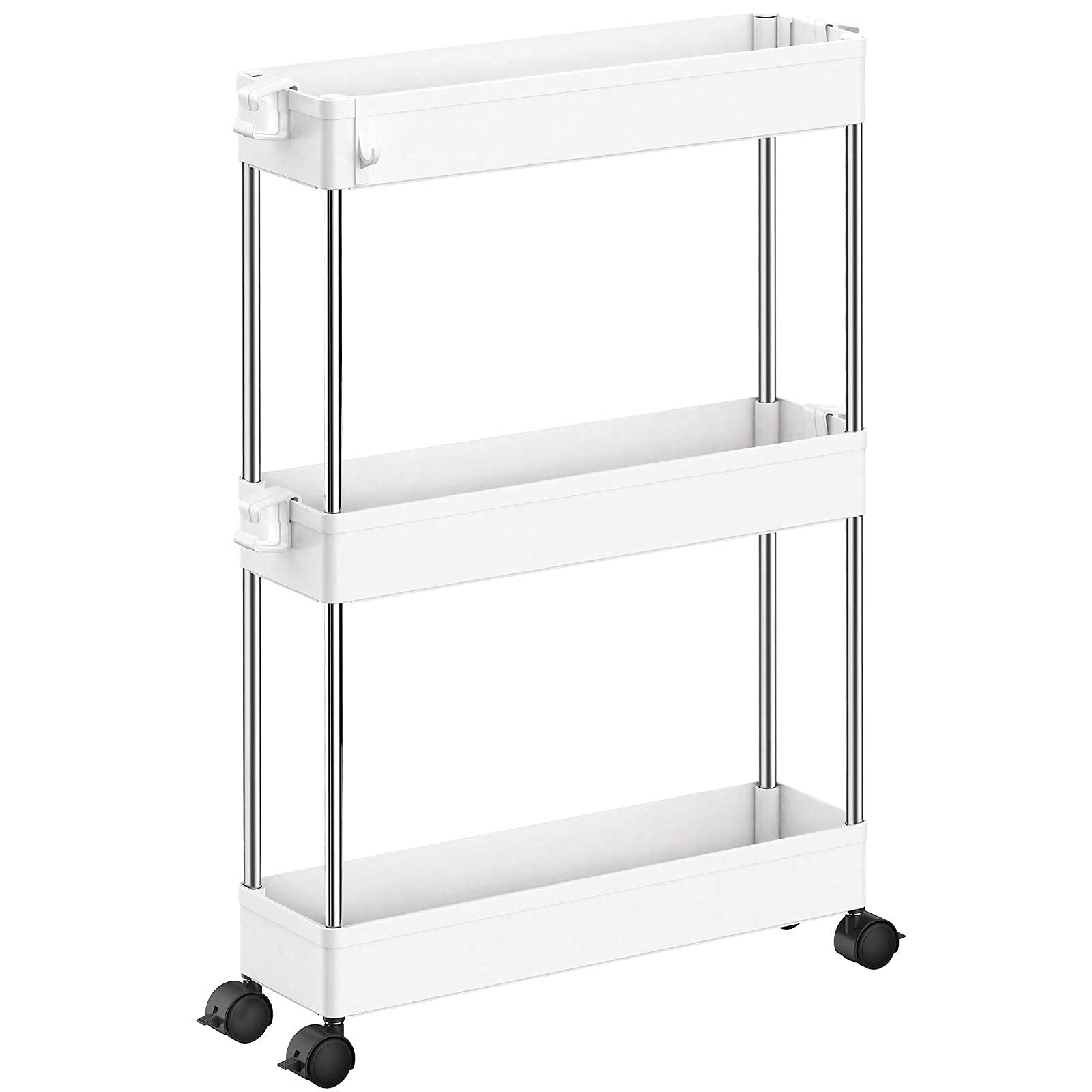 【特価商品】SPACEKEEPER キッチンワゴン スリム 隙間収納 13cm ラック キャスター付き カート ローリング おしゃれ 調味料 食品 ペットボトル 小物 台所 洗面所 冷蔵庫横 3段 ホワイト | ニコニコSHOP