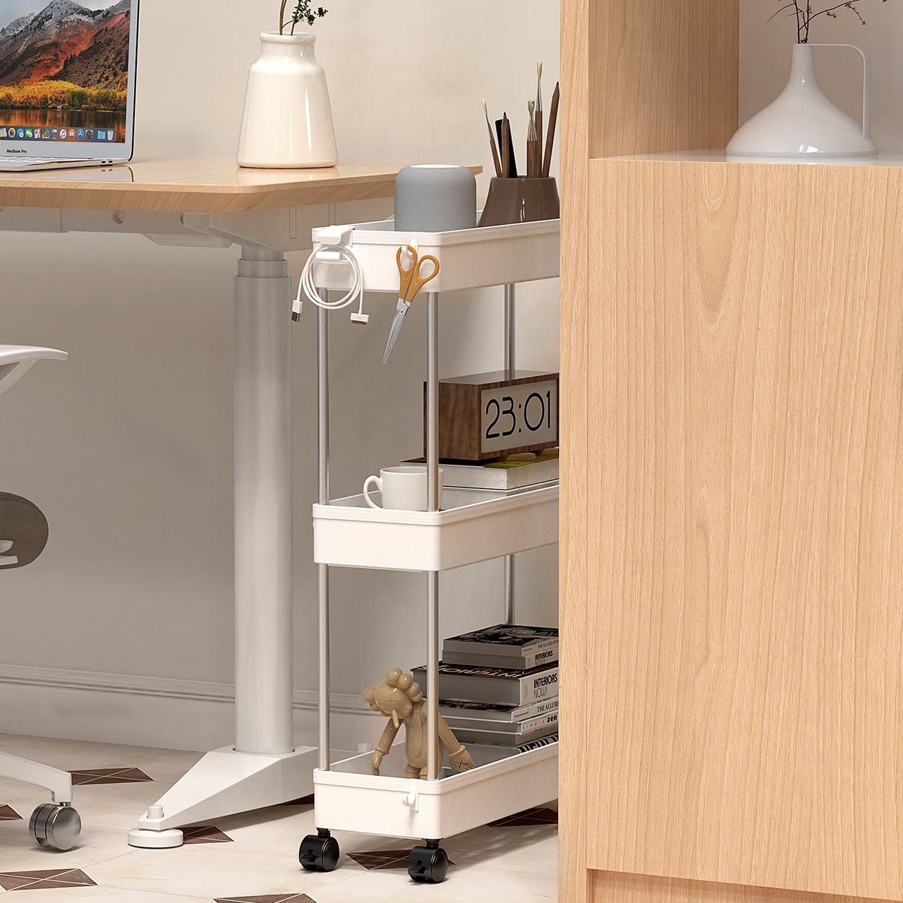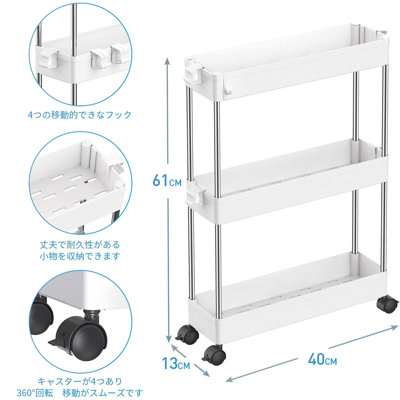 【高品質の家庭用収納 ワゴン】高級な材質は採用なので、高い安定性を誇ります。スリムボディーをして、部屋の隙間に自在に配置されています。トイレ収納、ベッドルーム、居間、子供部屋、キッチン、書店、美容室などの使用に最適して、収納力は抜群です。いろんなシーンで大活躍なキッチンワゴンです