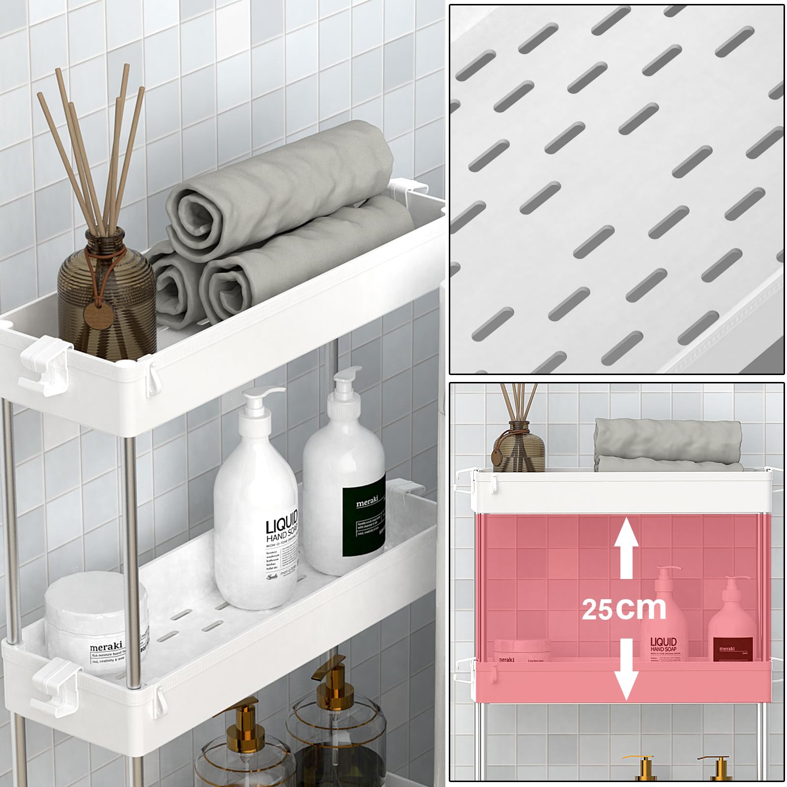 【頑丈&耐久性】軽量で丈夫な素材でできたワゴンで、ご底板は穴付きで通気性がよく、お掃除が簡単で、湿気が多い場所でも安心。また、落下防止フレーム付きがあり、小物や割れ物等落下の心配なく、ジャムなどの小さいものペットボトルなどの大きな物まで収納可能です。