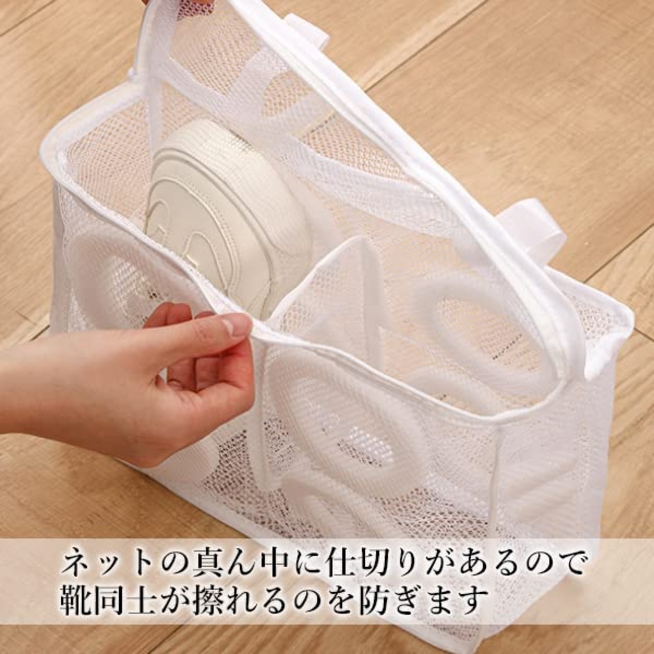 ネットの真ん中に仕切りがあるので靴同士が擦れるのを防ぎます。