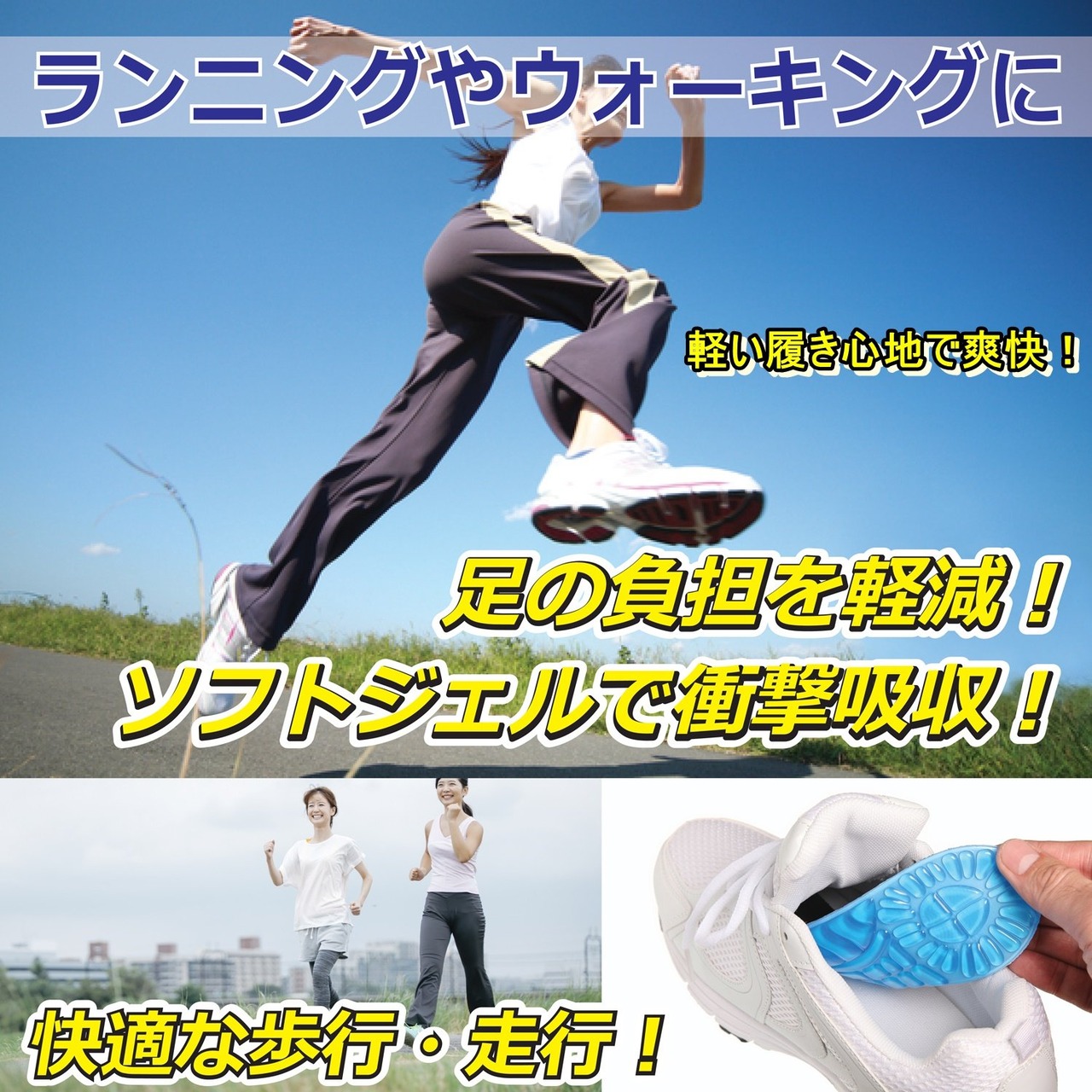 足が疲れやすい方、立ち仕事や外歩きが多い方、スポーツをされている方、ウォーキングをされている方にピッタリです!また大きめの靴のサイズ調整に。ランニングやウォーキングに最適。足の負担を軽減。ソフトジェルで衝撃吸収!快適な歩行・走行!軽い履き心地で爽快!