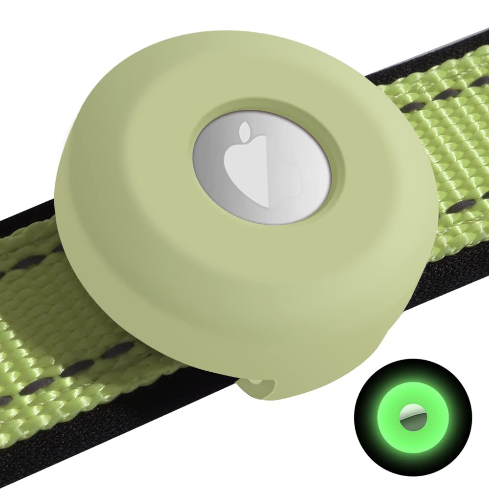 Airtag 犬用首輪ホルダー シリコン ペット首輪ケース Apple Airtag対応 紛失防止エアタグホルダー 猫犬首輪アクセサリー用 (蛍光グリーン)