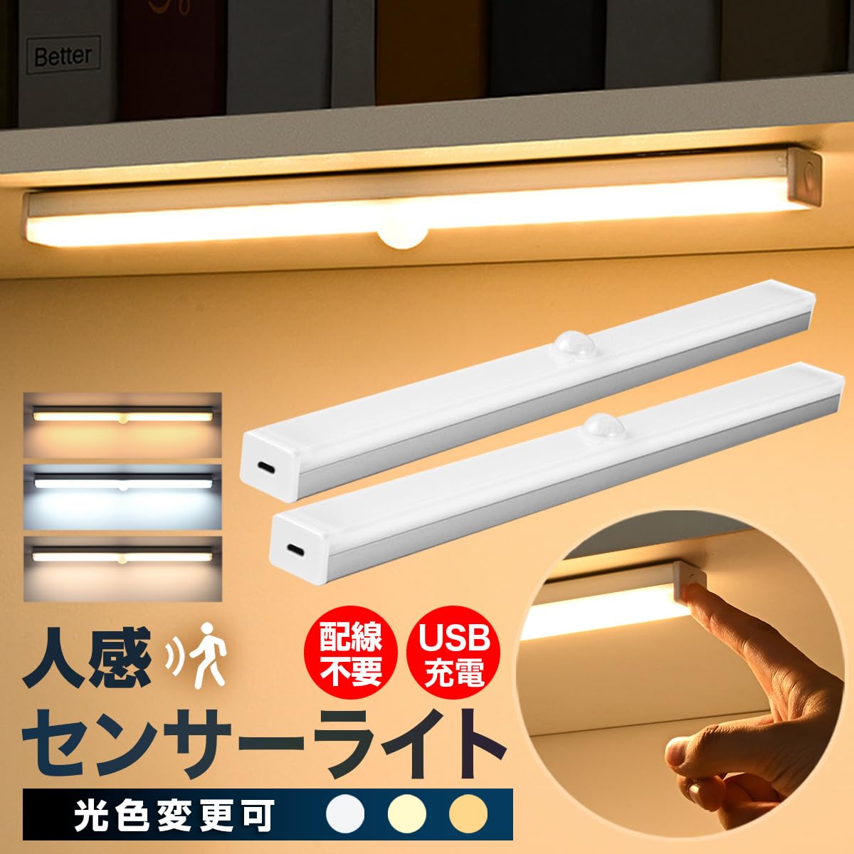人感センサーライト LED 室内 USB充電式 屋内 2本セット デスクライト キッチン 調光 省エネ コードレス 台所 玄関 明るい 夜間 トイレ 廊下 足元灯 (21cm 三色光)