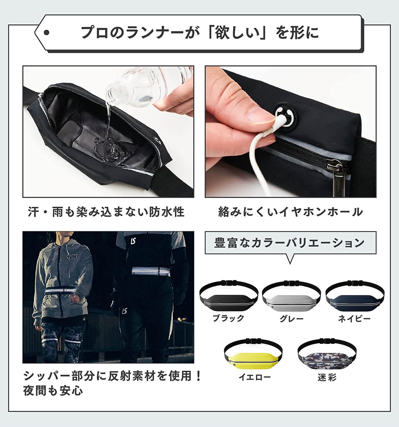 【新着商品】ランニング ポーチ 【日本代表ランナー監修】 ウエスト バッグ 揺れない 軽量 大容量 伸縮 スマホ ボディバッグ ユニセックス ジョギング ウォーキング