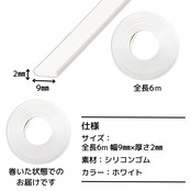 【仕様】サイズ:全長6m 幅9mm×厚さ2mm 素材:シリコンゴム カラー:ホワイト