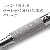 低重心のアルミ製ボディとローレット(凹凸)加工を施した、すべりにくいグリップ部により、安定した筆記感を実現。
