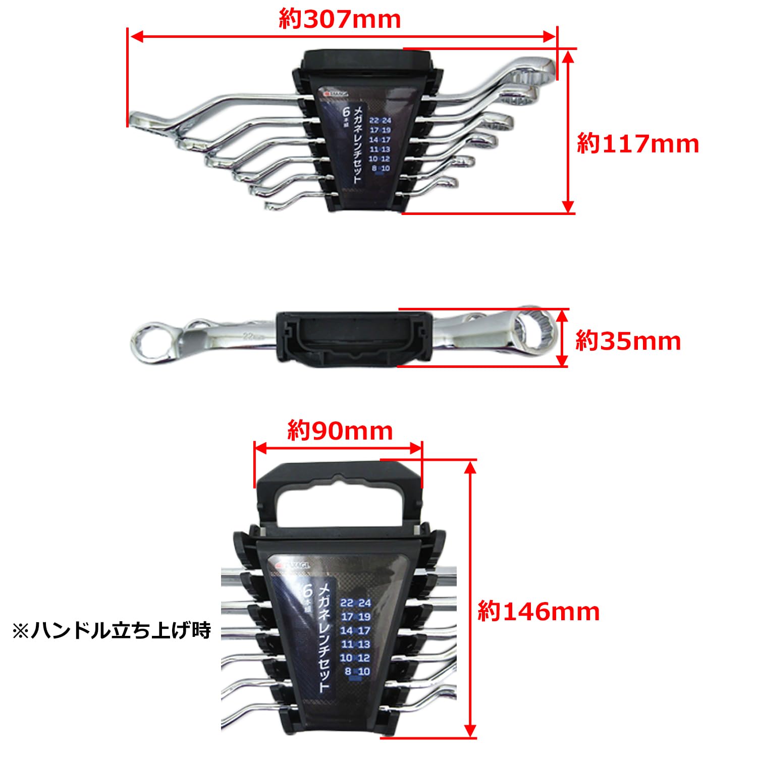 【新春セール】高儀(Takagi) メガネレンチセット ミリ 6本組 8×10mm/10×12mm/11×13mm/14×17mm/17×19mm/22×24mm ボルト ナット 締めつけ ゆるめ作業 メガネレンチ 工具 収納に便利 ホルダー付き | ニコニコSHOP