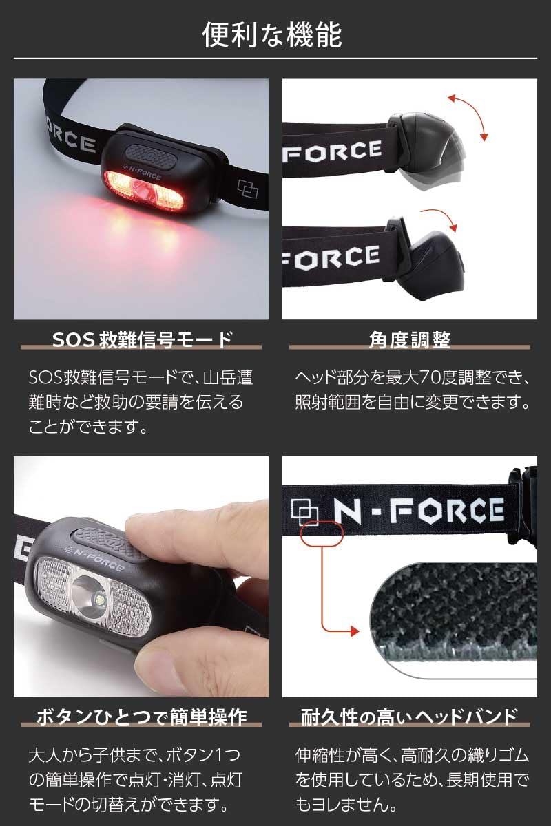 ヘッドライト 充電式 軽量 コンパクト ヘッドランプ 防水N-FORCE SC-400R