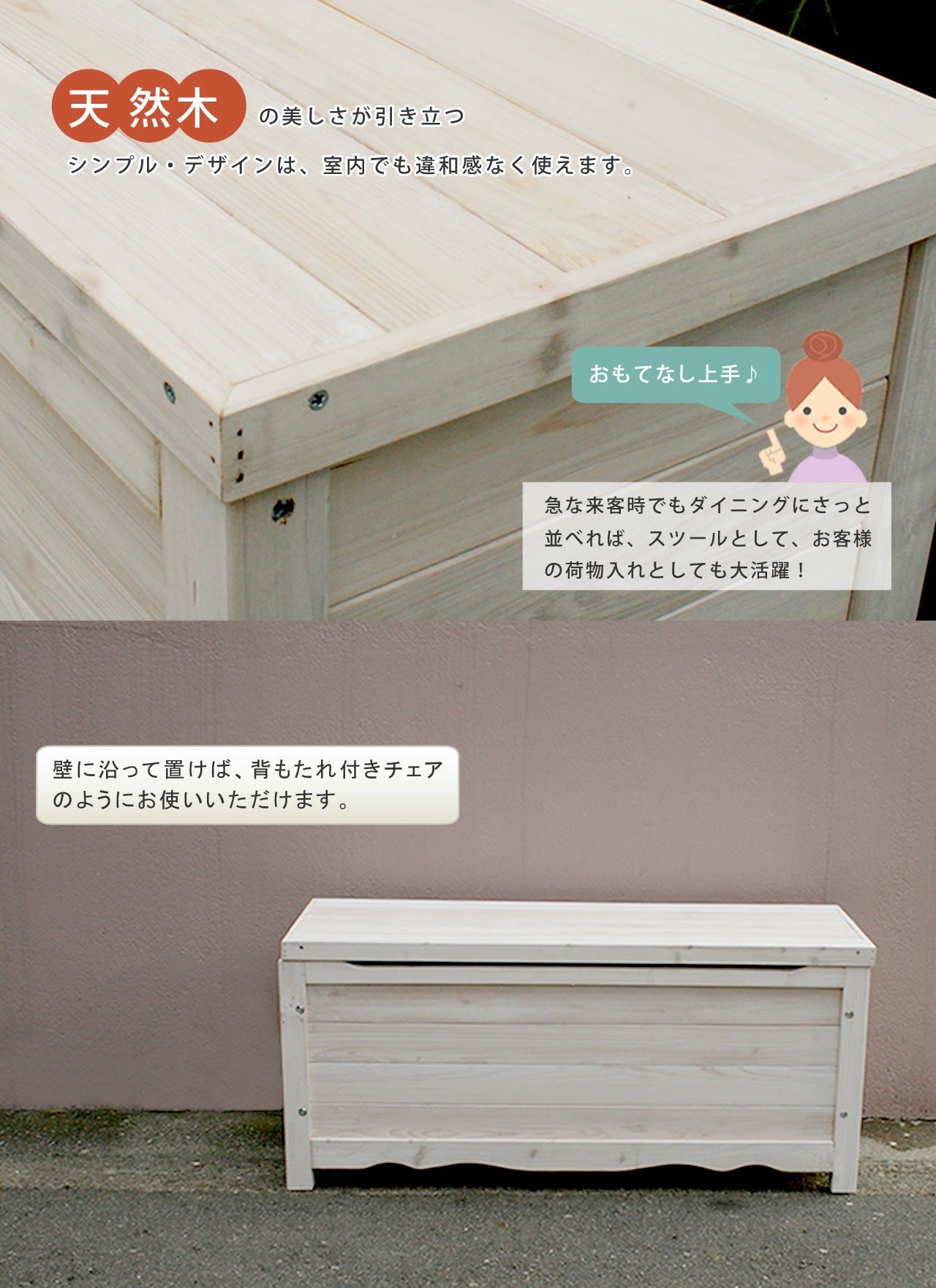 特徴: 座面下に園芸用品や遊具などもすっきり収納可能。※収納部は防水ではございません。