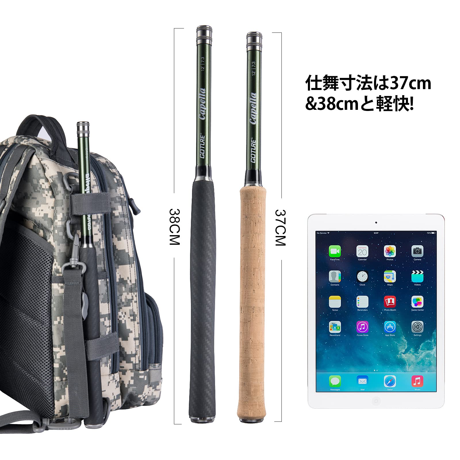 【ロッド仕様】ロッド全長:3.6m、セクション:13、仕舞い寸法:37.5cm、 調子:7:3。対象魚:ヤマメ・アマゴ・イワナ・ニジマス・トラウト