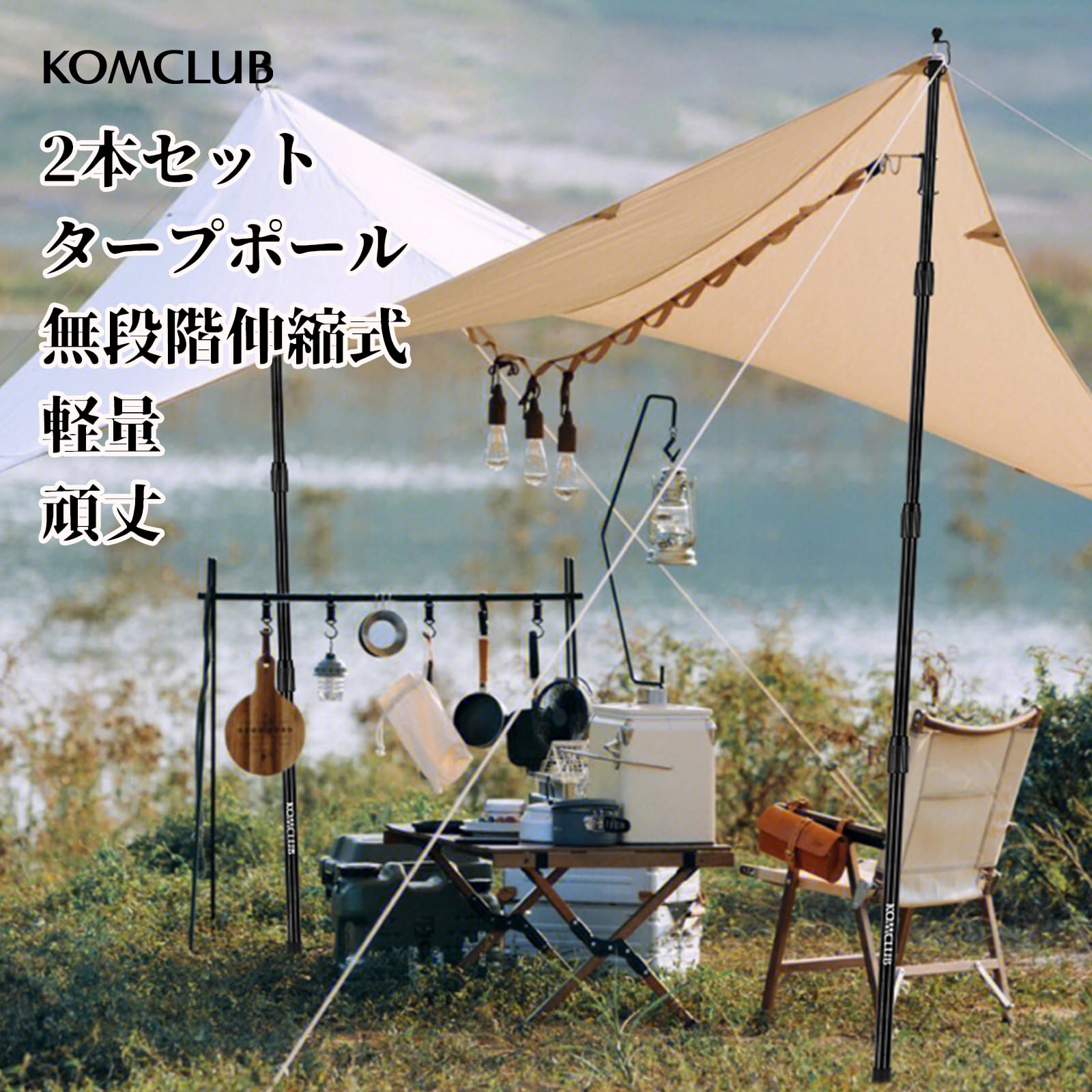 【新春セール】KOMCLUB タープポール テントポール 伸縮式タープポール 伸縮85cm~250cm 直径20mm~30mm 無段階調節 高さ調節 スライド式 組立不要 2本セット4本セット グラスファイバー ブラック 軽量 収納袋付き コンパクト天幕用ポール キャンプ 設営用 | ニコニコSHOP