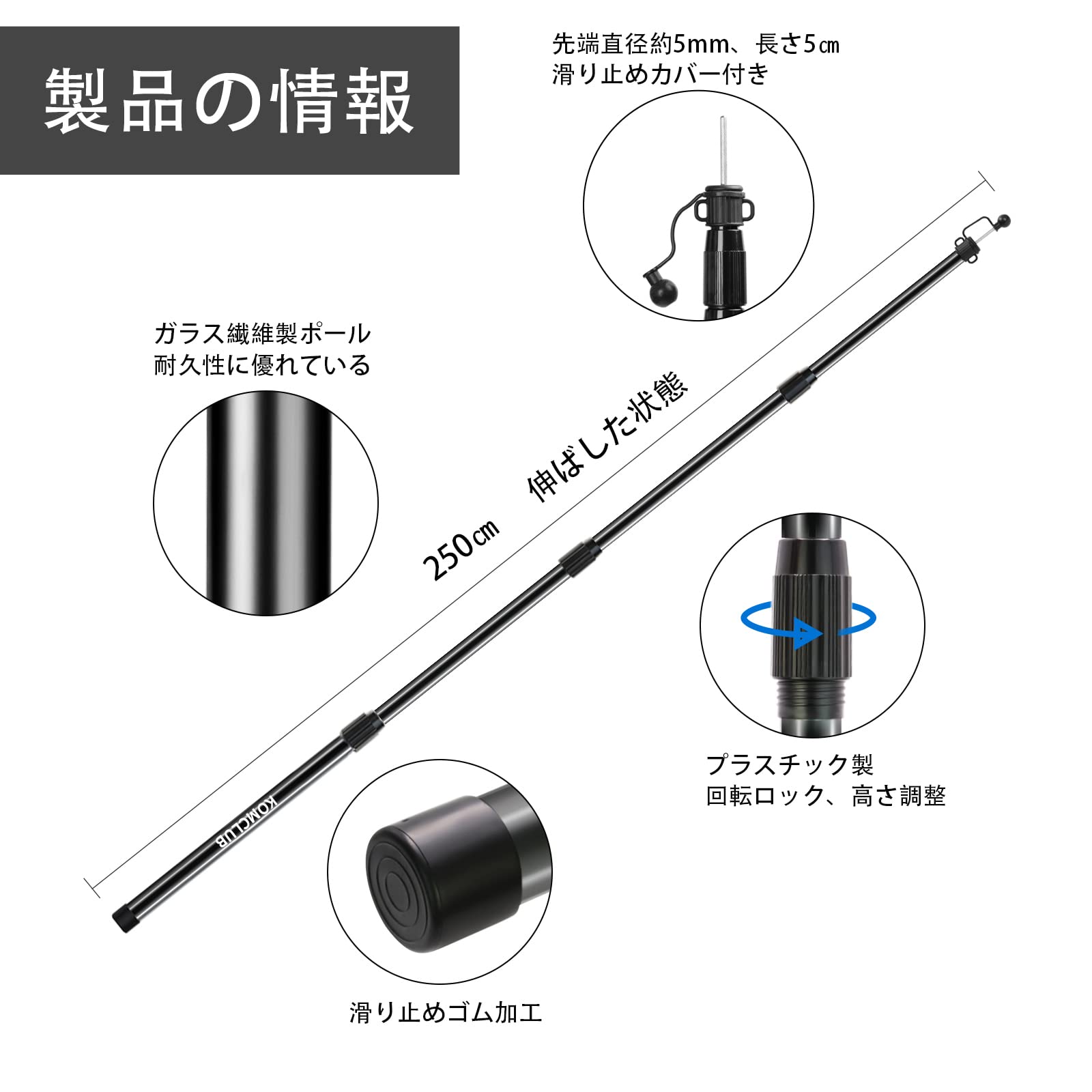 【優れている材質】ガラス繊維製材質を採用し、軽量かつ強度を持ています。耐食性や耐熱性にも優れています。ポールの最大直径は30mmなので、強い風でも折れにくくて、頑丈なポールです。