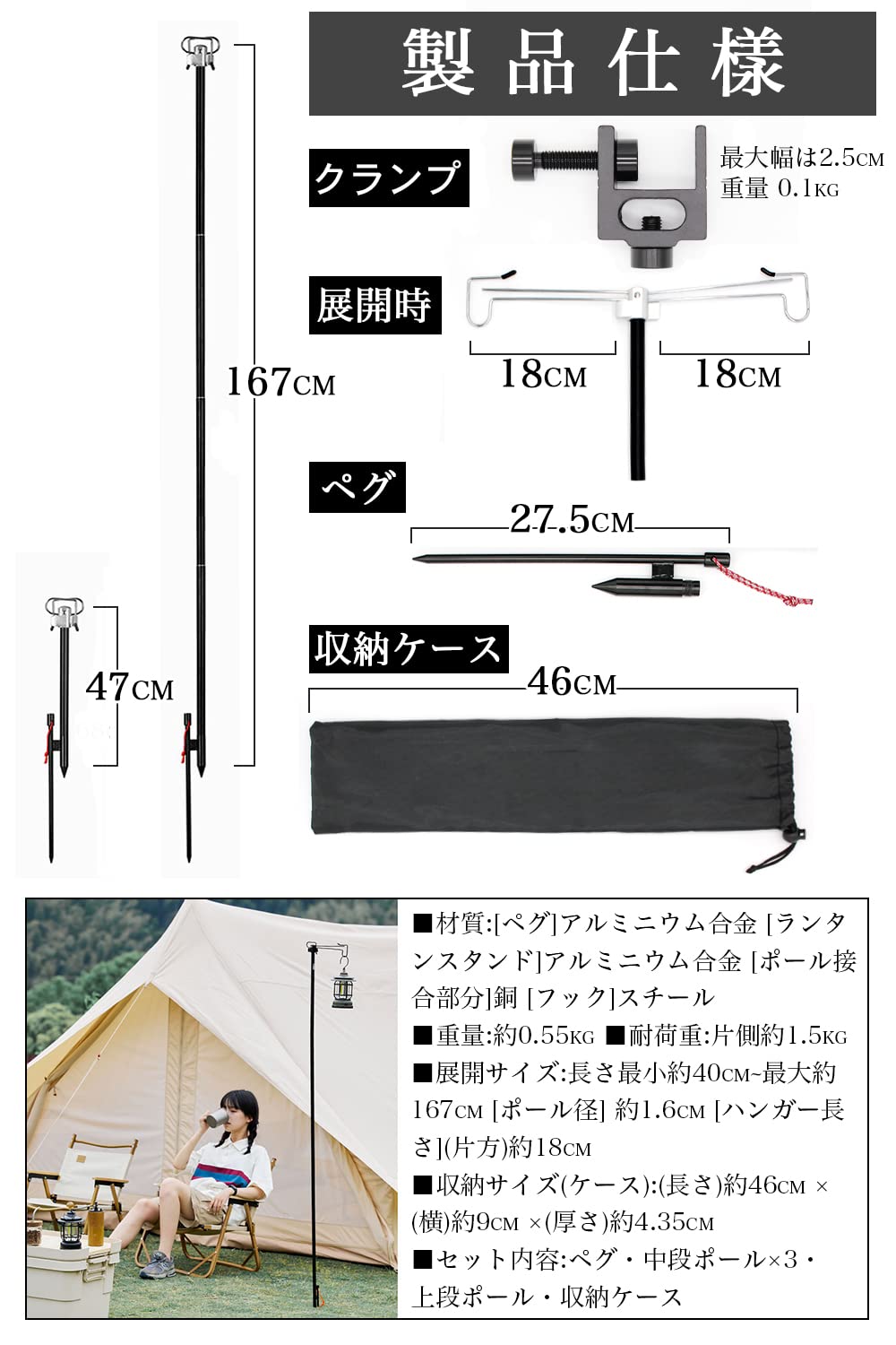 【在庫処分】CHENGMAY テーブル ランタンスタンド 収納式ダブルハンガー 直径16mm 打ち込み式 テーブル 2way 軽量 高さ調整 コンパクト キャンプ ランタンポール アウトドア用品 クランプ式 収納ケース付き | ニコニコSHOP