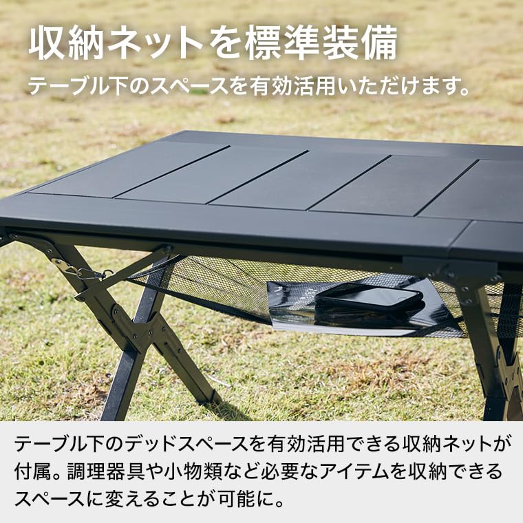 【収納ネットを標準装備】テーブル下のスペースを有効活用いただけます。テーブル下のデッドスペースを有効活用できる収納ネットが付属。調理器具や小物類など必要なアイテムを収納できる。【必要十分な耐荷重”30kg”】優れた安定性を発揮する3本構造のフレーム。フレームの耐荷重は必要十分な"30kg"鉄製のフライパンなどの調理器具を置いても問題ありません。※耐荷重は静止耐荷重です。