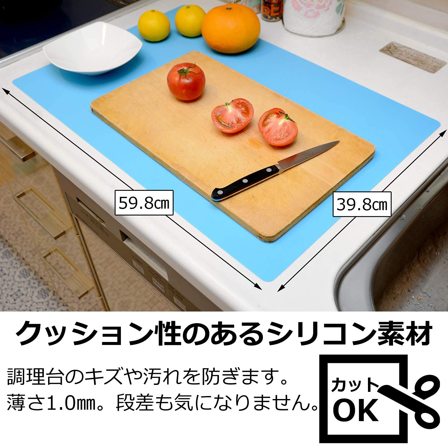 薄いタイプのシリコンマットでキッチン台にピタッと敷くことができます。非常に薄いため、段差も気になりません。調理器具が滑りにくくなり、調理の効率がアップします。調理台の傷や汚れを防ぐこともできます。食器棚の中に敷いて食器の滑り止めにも使えます。
