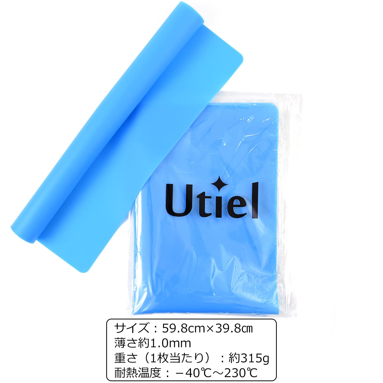 サイズ:約60×40㎝、薄さ約1.0mm、重さ(1枚当たり):約315g、耐熱温度:-40℃~230℃ ※:マット上で包丁・ナイフ等の鋭利なもので切り付ける作業は、シート並びにシートの下にある保護対象を傷付けるおそれがありますので、ご注意ください。