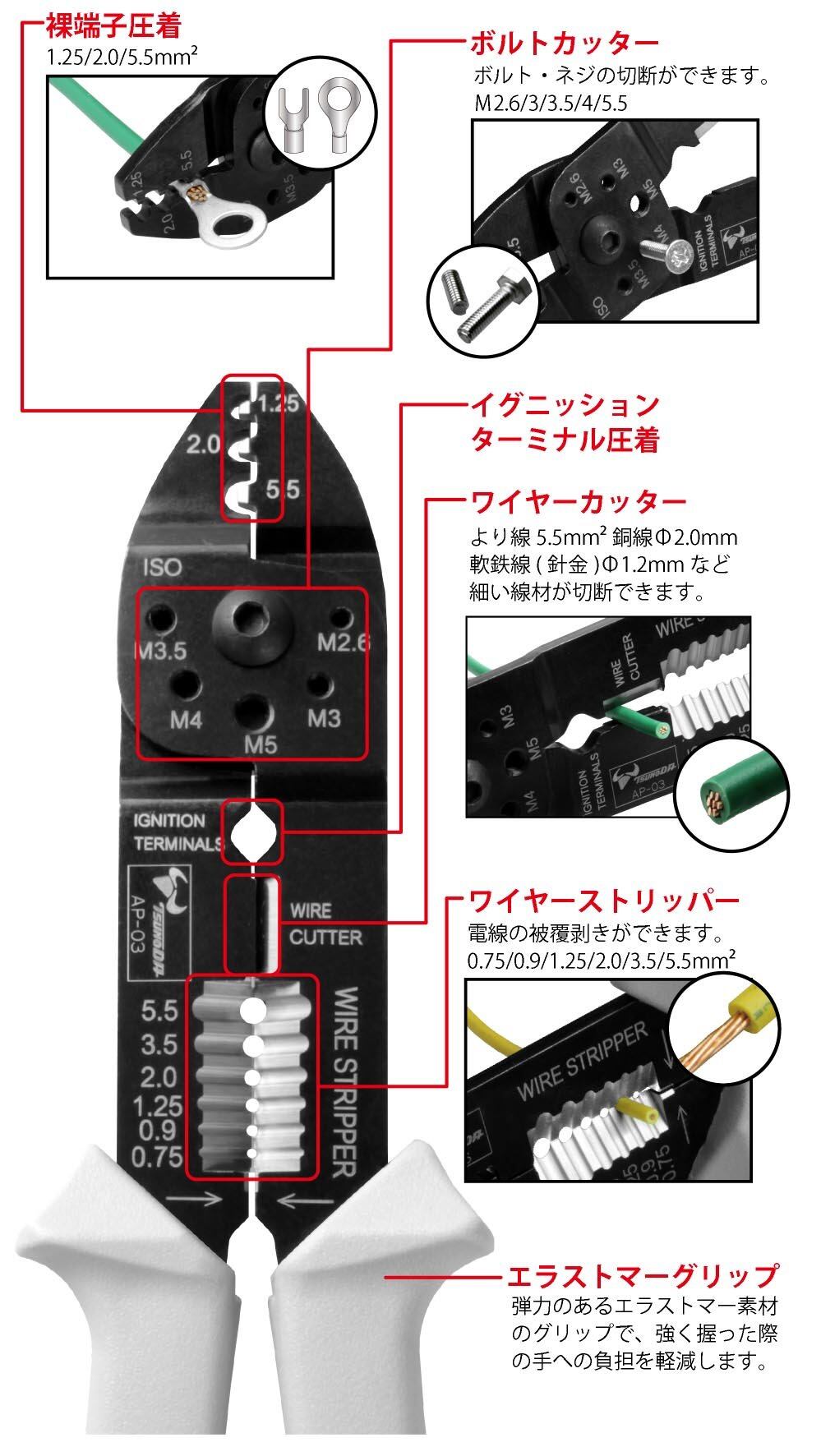 ツノダ(TSUNODA) 電工万能ペンチ 裸圧着端子用 AP-03