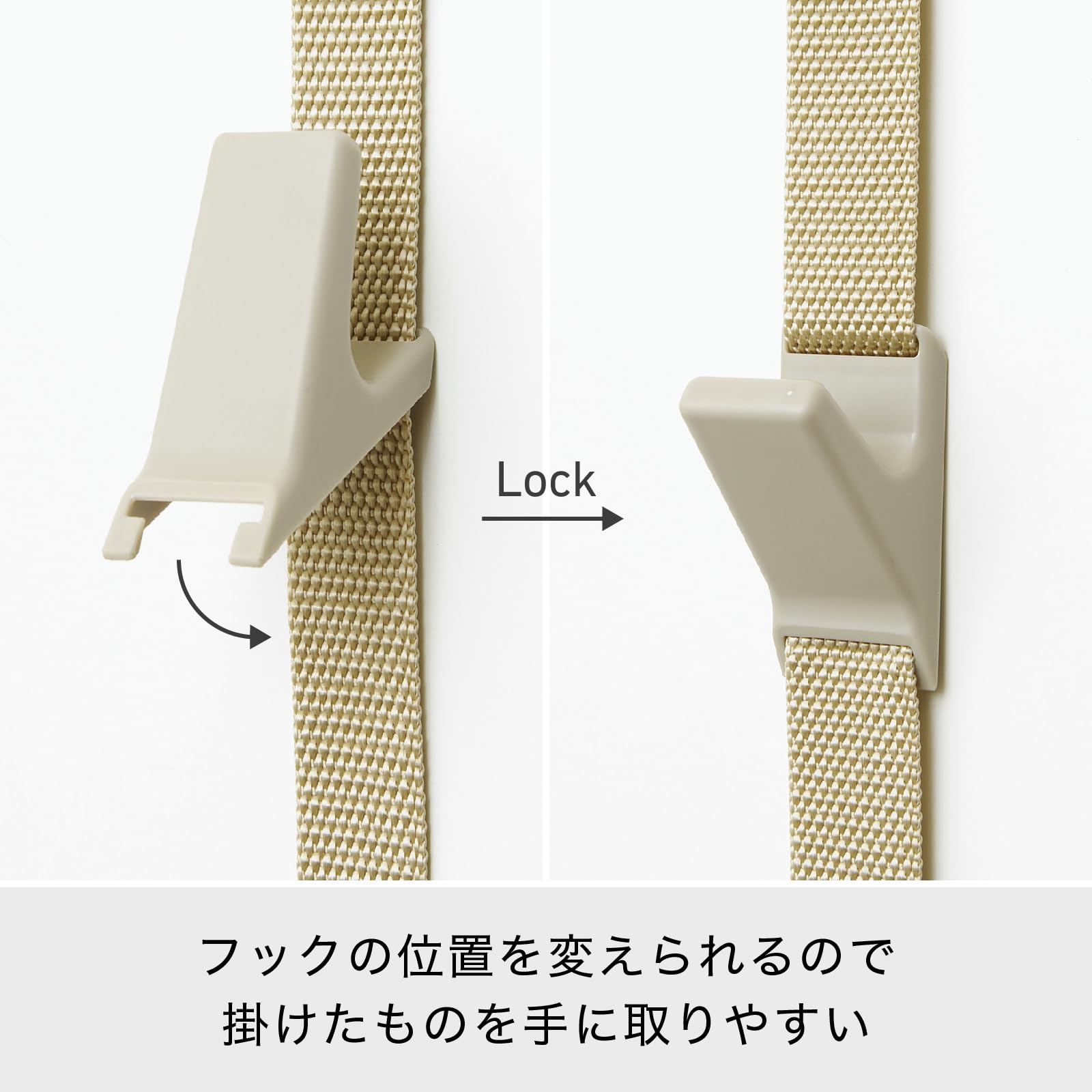 素材:ベルト/ポリプロピレン、フック/スチロール樹脂、金具/スチール