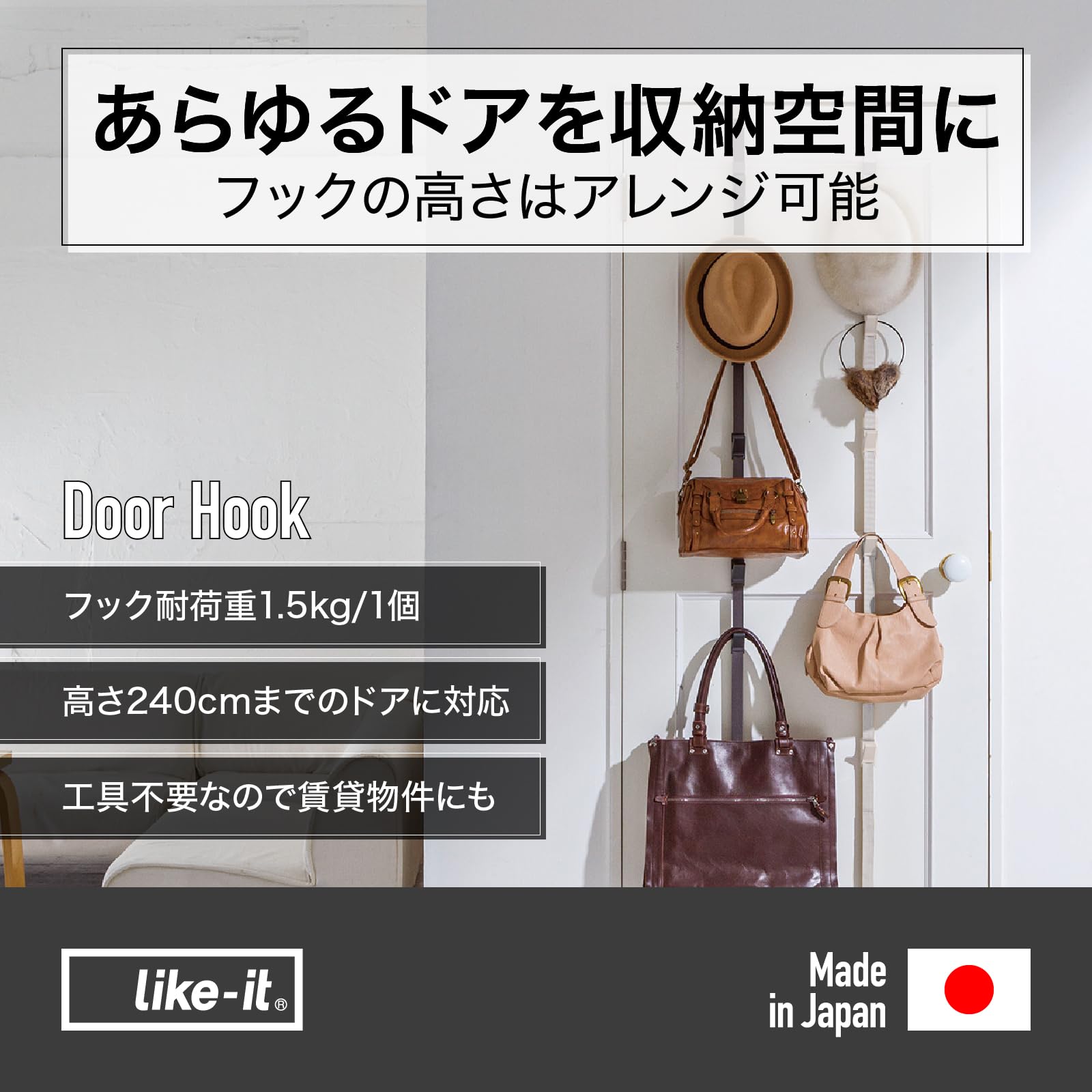 ライクイット (like-it) かけるだけで、暮らしが整う。そっとドアフック 壁掛け収納 取付簡単 (フック6個) ベージュ 高さ約240cmまでのドア対応 NDH-01 ヘルメット 収納 玄関 壁掛け 子ども部屋