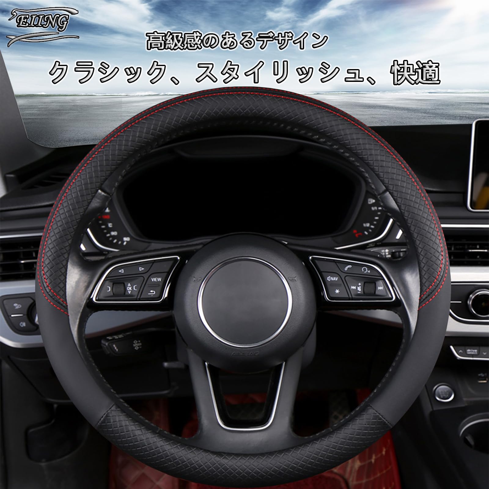 【数量限定】EIING ハンドルカバー 車用 軽自動車 sサイズ 3Dグリップ 滑り止め ステアリングカバー 汎用 おしゃれ 通気性がよい 普通車 ハンドル 保護カバー 高級 内装パーツ 車用品 アクセサリー オールシーズン対応 円形 37~38CM (ブラック) | ニコニコSHOP