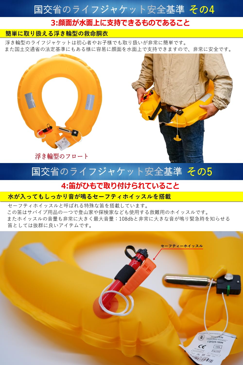 商品情報 自動膨張式ベルトタイプは海中転落時に水圧を検知し2〜3秒でMAX値までフロートが膨れます。これは転落時にパニックになりやすい初心者の方に非常にお勧めです。 オックスフォード素材を採用している為、木の枝や岩でもライフジャケットの生地が裂けにくく、汚れも落としやす事が特徴です。 最大110Kgの重さを一気に海面まで引き上げる浮力を持っております。使用環境は真冬-30度〜真夏65度まで正常動作可能です。