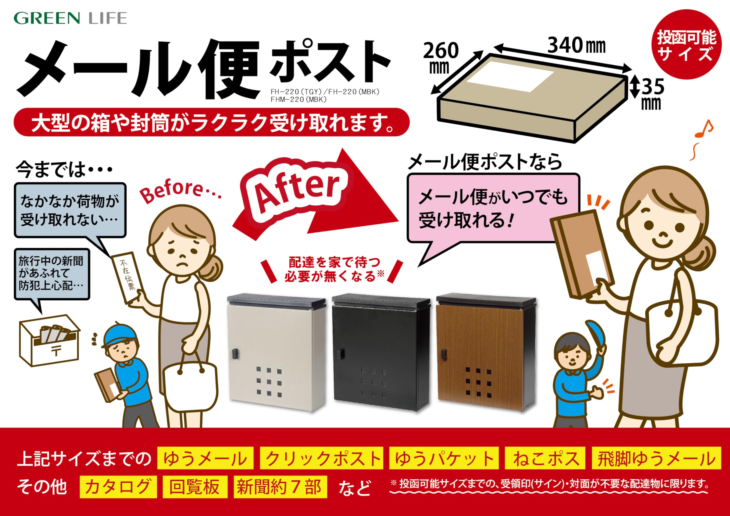 【メール便受取可能】26×34×3.5㎝までのメール便が受け取れます。