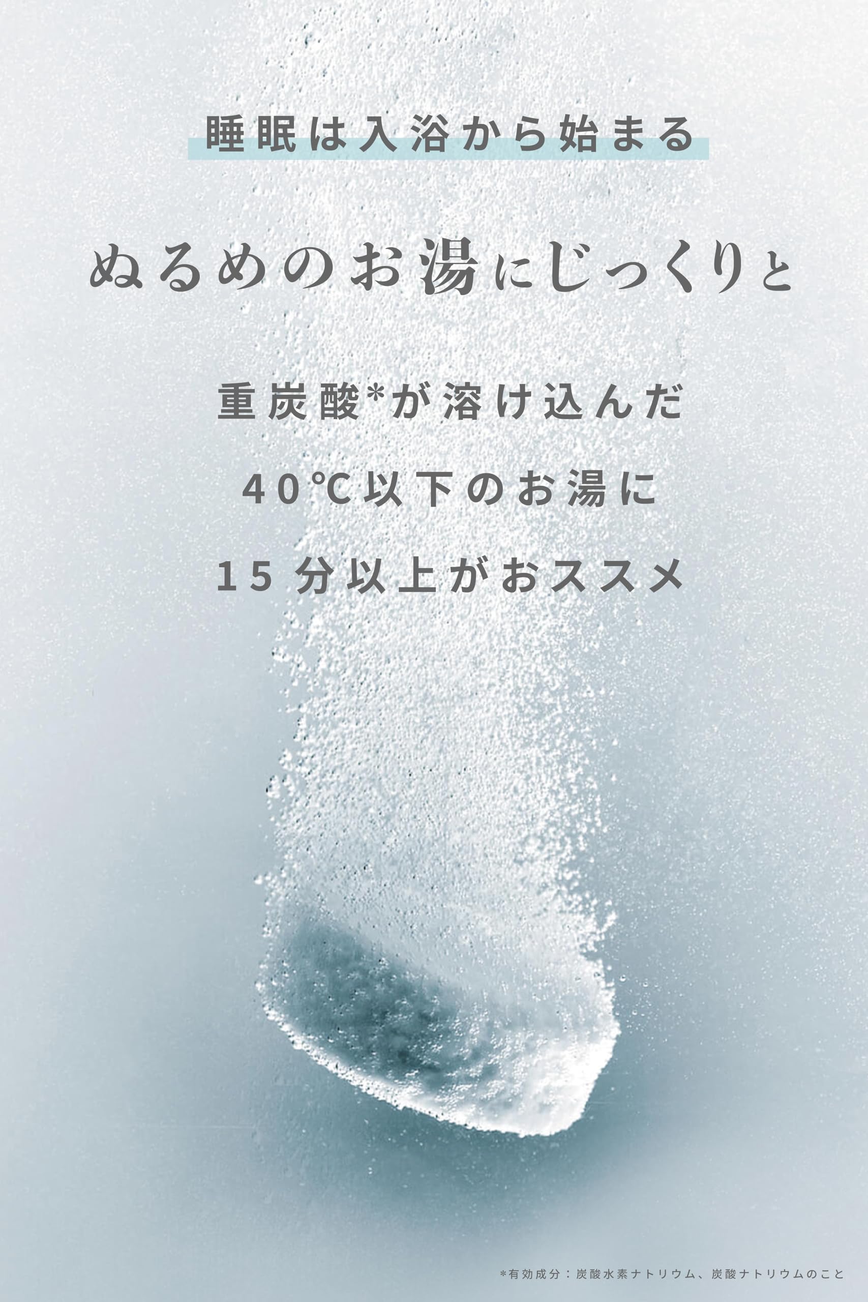 重炭酸*入浴でその日の疲れをとり、眠りにつくための準備を *有効成分:炭酸水素ナトリウム、炭酸ナトリウム