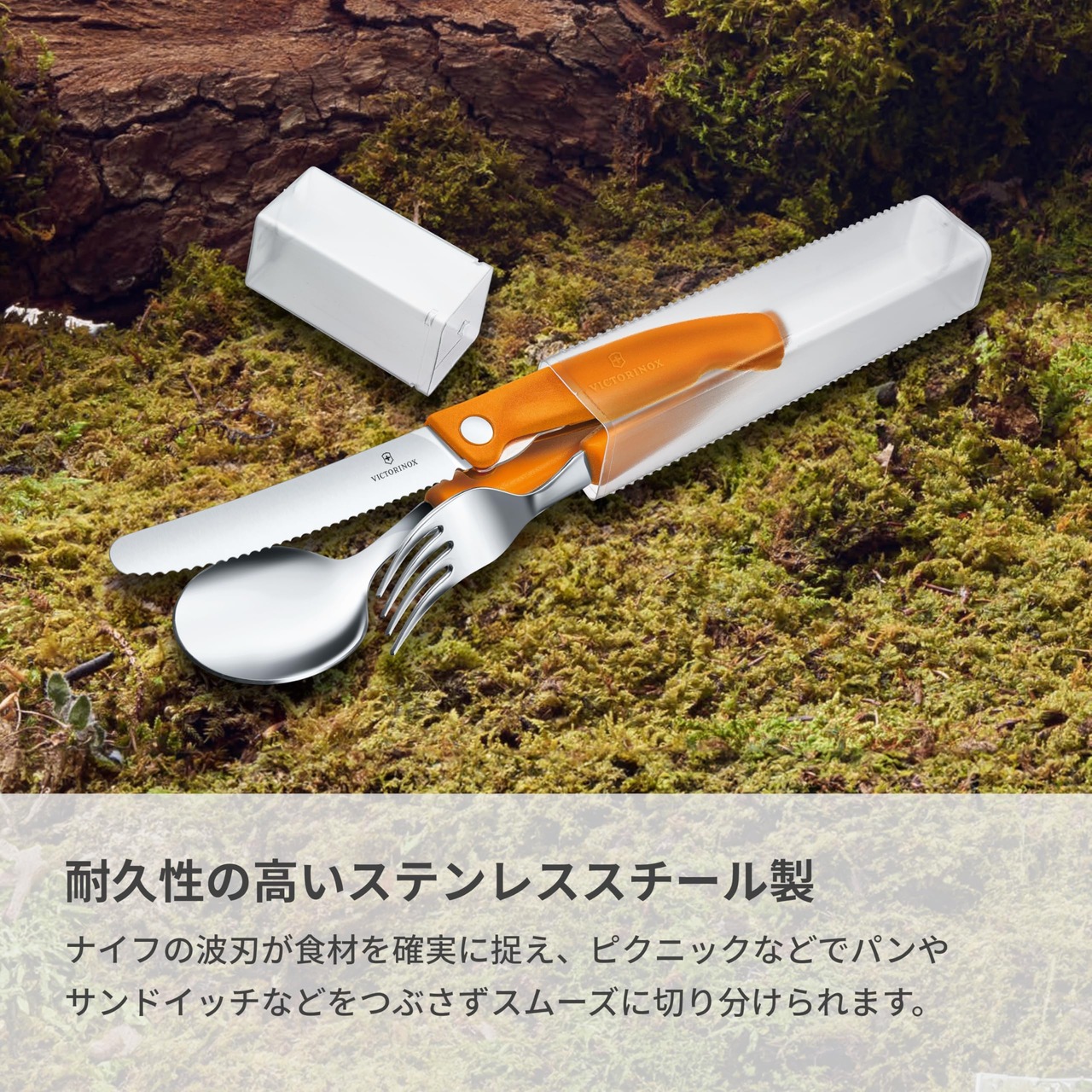 【在庫処分】VICTORINOX(ビクトリノックス) 包丁セット 食洗機対応 ペティナイフ フォーク スプーン3本 波刃 オレンジ アウトドアやキャンプで活躍するケース付き ピクニック スイスクラシック 6.7192.F9 | ニコニコSHOP