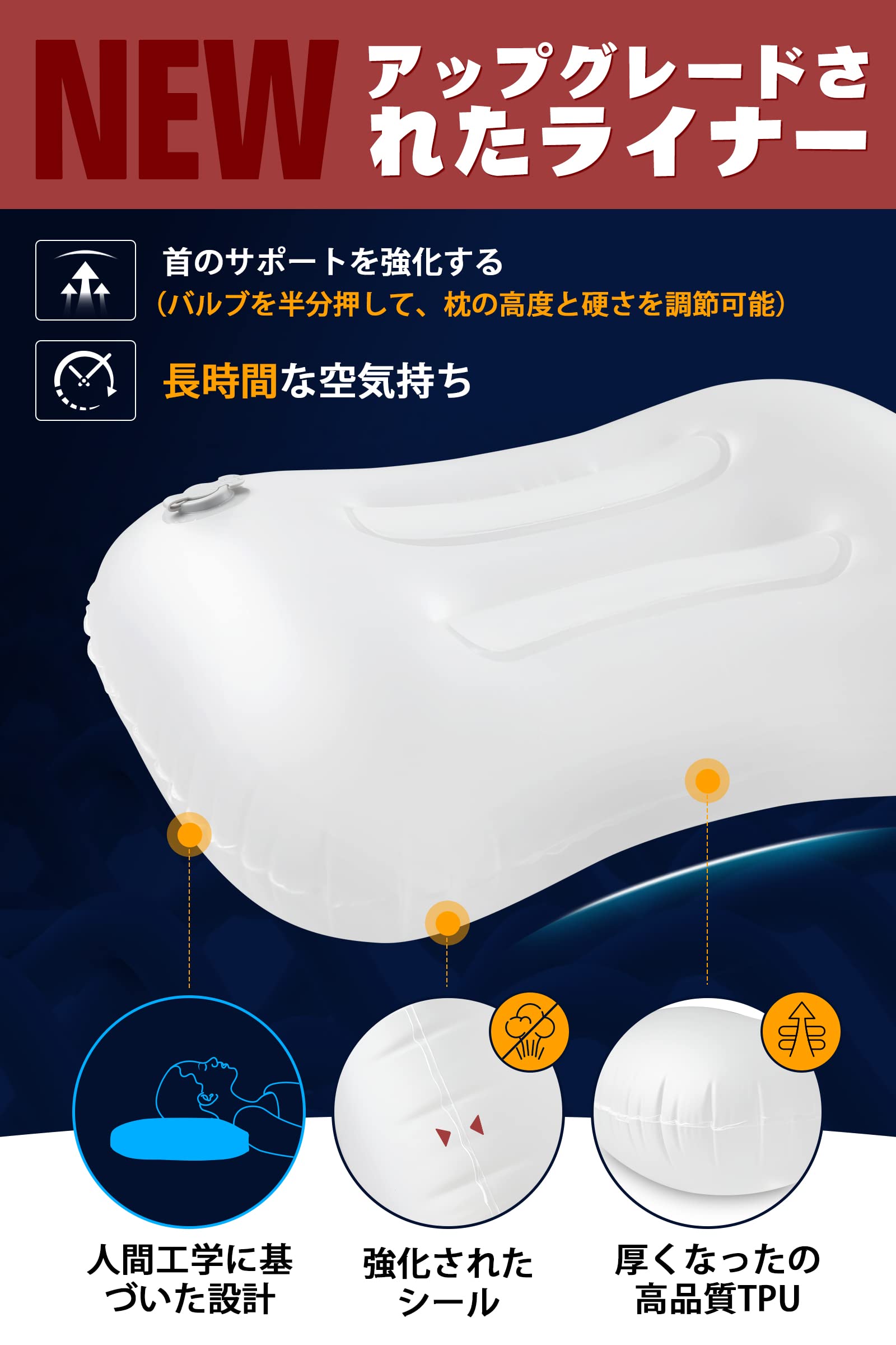 【絶妙な使用感・快適さはここから始まる!】このキャンプ 枕はコットンカバー付きで、通気性、柔らかの触感を提供します。枕カバーが汚され場合、クリーニングのために取り外すことができます。人間工学に基づいたエアー枕は、頭から首までしっかりサポートします!