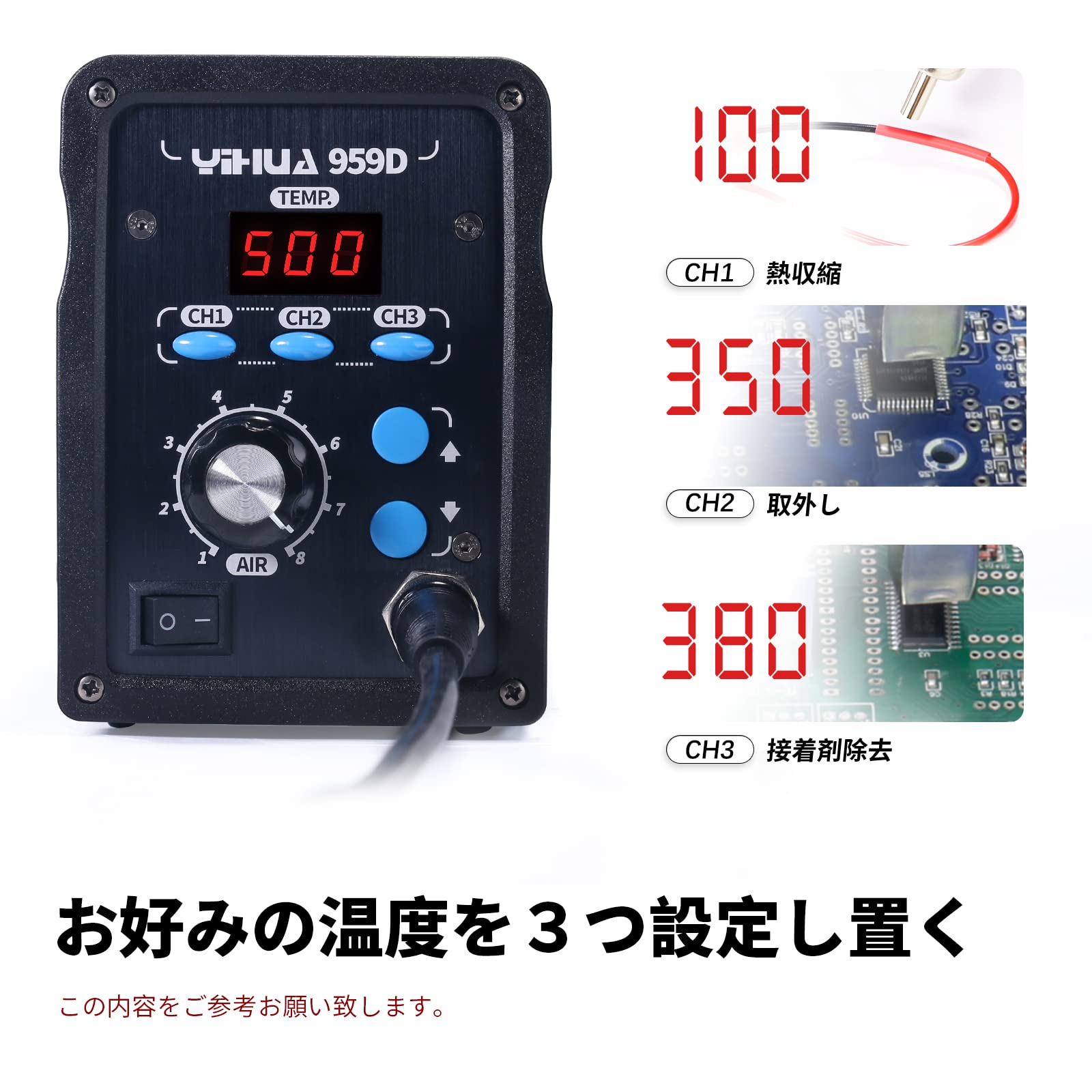 YIHUA 959D リワークステーション ホットエアーガン 温度制御型(100℃~500℃) PSE認証 日本語取扱説明書付き 高速加熱 低騒音