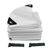 【厚手防水シート】JIANLEI 防水シートはメッシュ繊維強化ロープと PVC 融合を使用しています, 厚さ0.5mm、250g/m2、超抗プル性、抗紫外線性があり、光透過率に影響を与えません。防水シートの四隅には三角形の保護コーナーがあり、1mごとに両側にグロメットがあります,四方にロープが内蔵されており、引っ張りに強く、変形しない,それらは、補強されたエッジ全体に沿って配置されています、吊り下げが簡単で、風に抵抗する性は強いです。