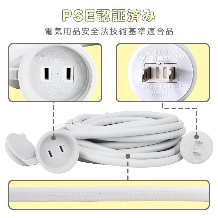 【商品仕様】最大使用上限:875W(125V×7A)/防水性能:防水・防滴(完全防水ではありません)/コードの仕様:VCT(0.75mm×2芯)